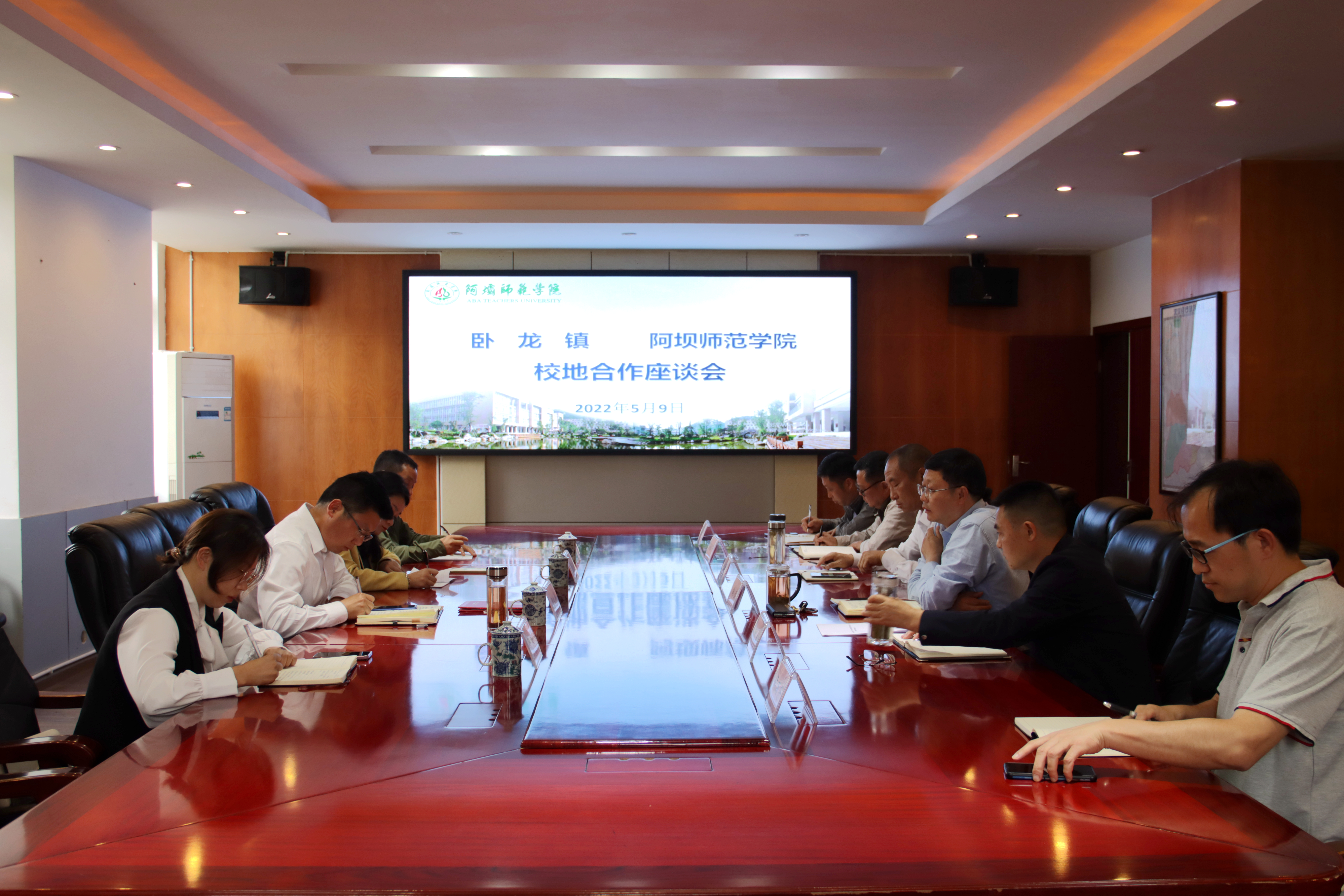 【本网讯】为促进我校与卧龙镇的交流与发展,共建良好校地合作关系。2022年5月9日15:30我校与卧龙镇工作人员于行政楼402举行合作座谈会。学校党委书记吴昊,党委副书记、校长向武,党委副书记、工会主席孙建平,副校长毛英,资源与环境学院党委书记余列,资源与环境学院副院长侯雨乐,卧龙特区副主任、卧龙镇党委书记周义贵,卧龙镇党委副书记梁杏媚,党委委员邓晴等一行人出席此次座谈会。本次座谈会由向武主持。