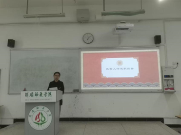 新一届诗社社长候选人向大会作了精彩竞聘演讲。全体会员民主推荐出南湖诗社新会长唐莎莎、副会长游敬梅。新一届诗社负责人决心以吃苦耐劳、无私奉献的精神和求真务实的工作作风,组织开展好各项活动,服务会员们的成长和成才,为诗社的发展做出新贡献。