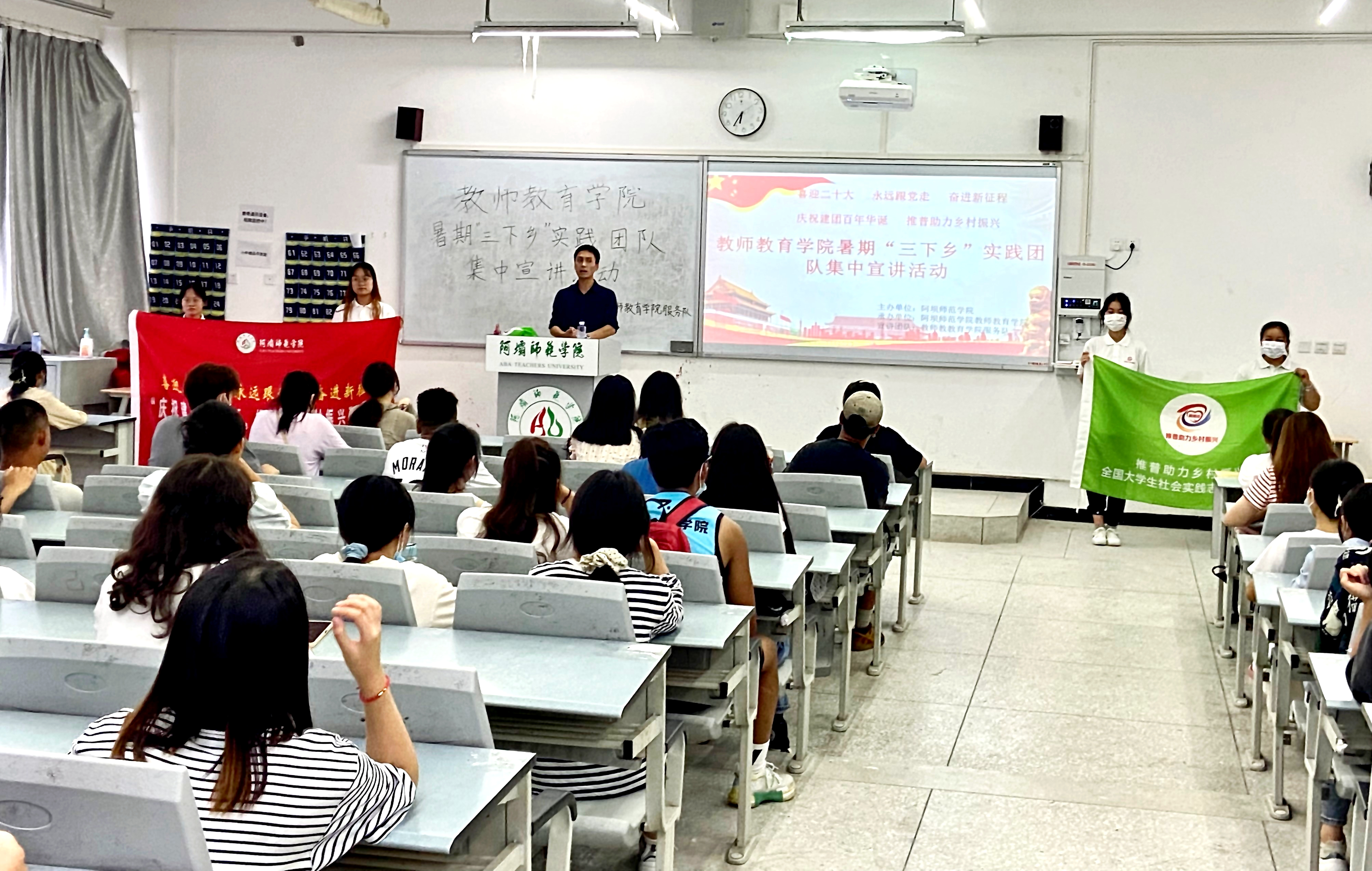 为深入贯彻习近平总书记关于教育的重要论述,践行志愿服务精神,弘扬中华民族传统美德,8月26日晚,教师教育学院暑期“三下乡”志愿服务队在树人楼C202教室组织开展校园宣讲活动,旨在积极引导广大青年学生了解志愿服务内涵,主动深入乡村开展推普工作,近100名学生聆听了社会实践宣讲报告。