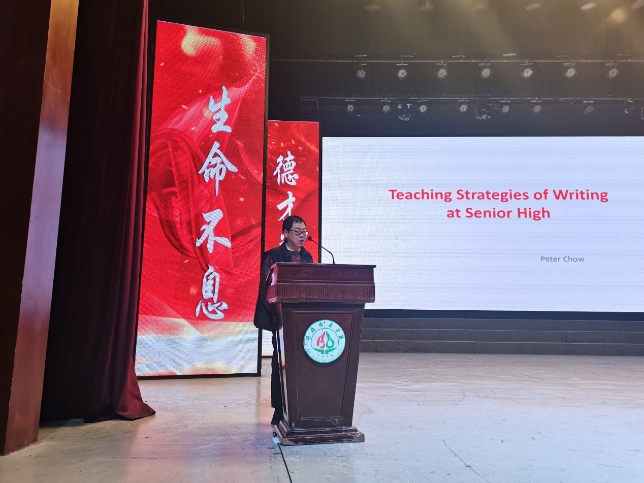 【本网讯】 为提高外国语学院学子的专业素养及教学技能,11月11日10:00,外国语学院特邀汶川中学周浩老师于南苑剧场举办题为“Teaching Strategies of Writing at Senior High”的讲座,外国语学院院长刘远志出席讲座,英语专业2021级1、2班,2020级3班参加讲座。