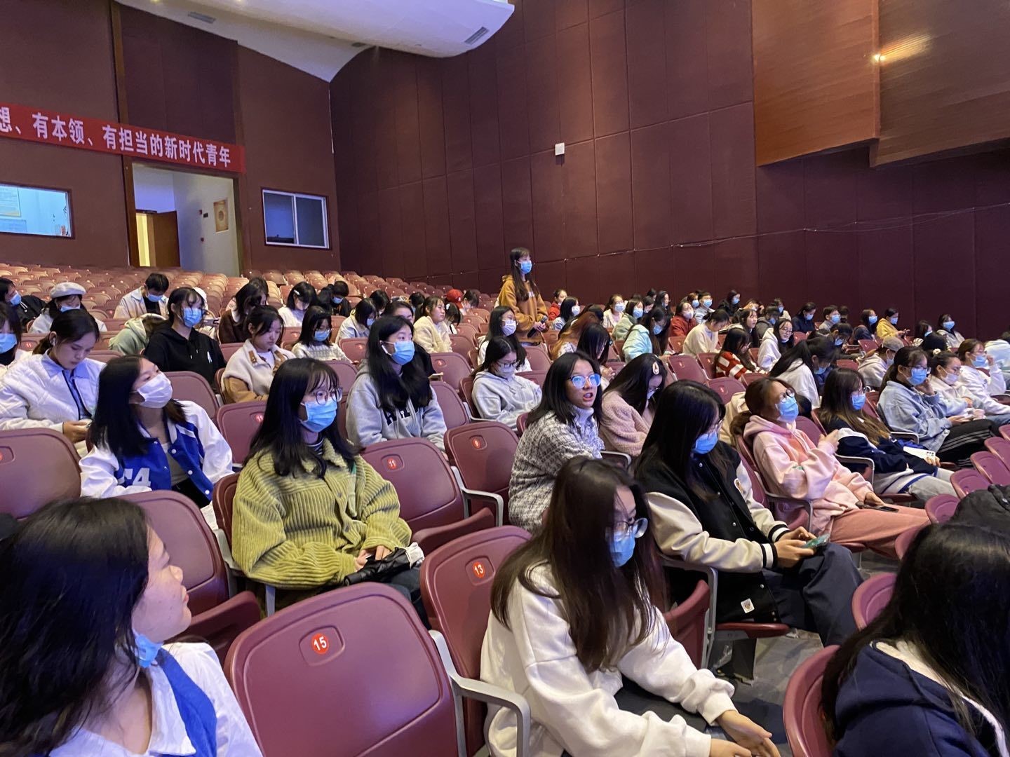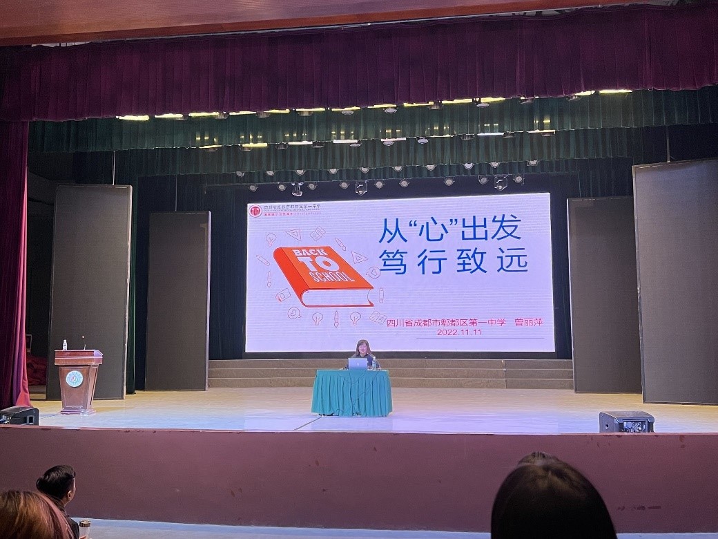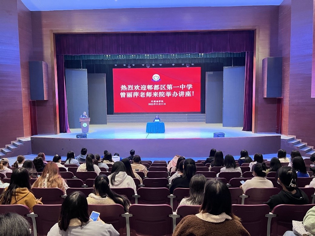 【本网讯】 为加强学生对外语教师职业的了解,帮助学生克服未来职业道路上的困难,11月11日16:00,外国语学院邀请郫都区第一中学曾丽萍老师于南苑剧场作题为“从心出发,笃行致远”的讲座,外国语学院院长刘远志、英语语言与教育教研主任唐勤泉、专任教师陈放出席讲座,英语专业2020级1班和2021级3、4班同学参加讲座。