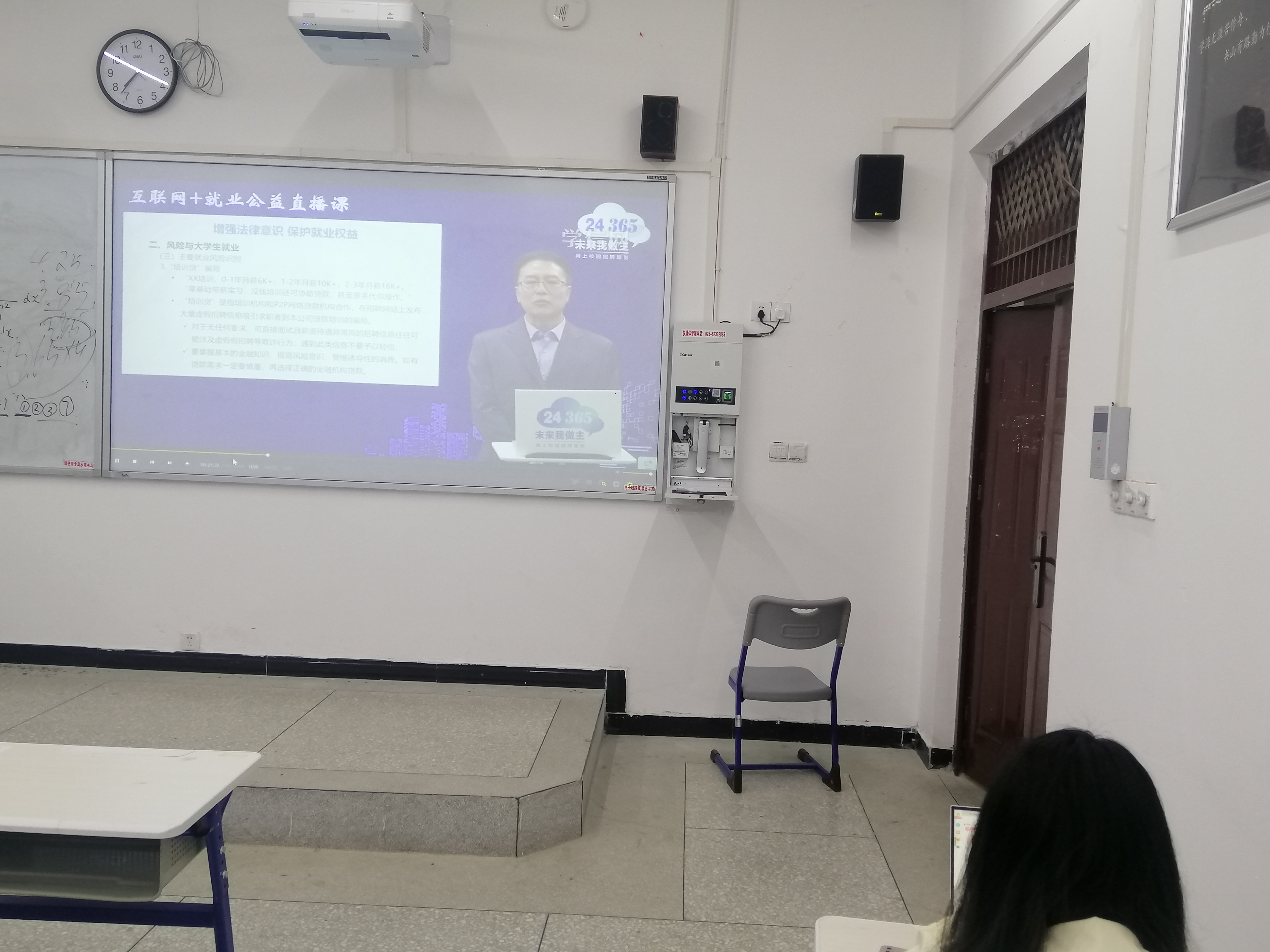 3月30日晚,教师教育学院组织2019级学前本1-4班在F203教室收看教育部“互联网+就业指导”公益直播课。本次直播课的主题是“增强法律意识 防范就业风险”。本次直播课由中国政法大学就业指导中心主任、全国普通高校毕业生法律行业就指委秘书长解廷民教授担任主讲。学院就业干事王亚老师与多名未落实工作的毕业生一同观看。