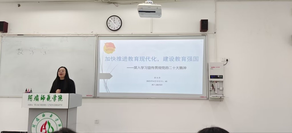 【本网讯】为深入学习贯彻习近平新时代中国特色社会主义思想和党的二十大精神,持续加强对我院青年的思想政治引领和价值引领。2023年4月13日11:30,我院“青马工程”培训班在树人楼C101开展了第三讲,由数学学院学工办副主任兼分团委书记金玉洁主讲,“青马工程”培训班全体成员参加。