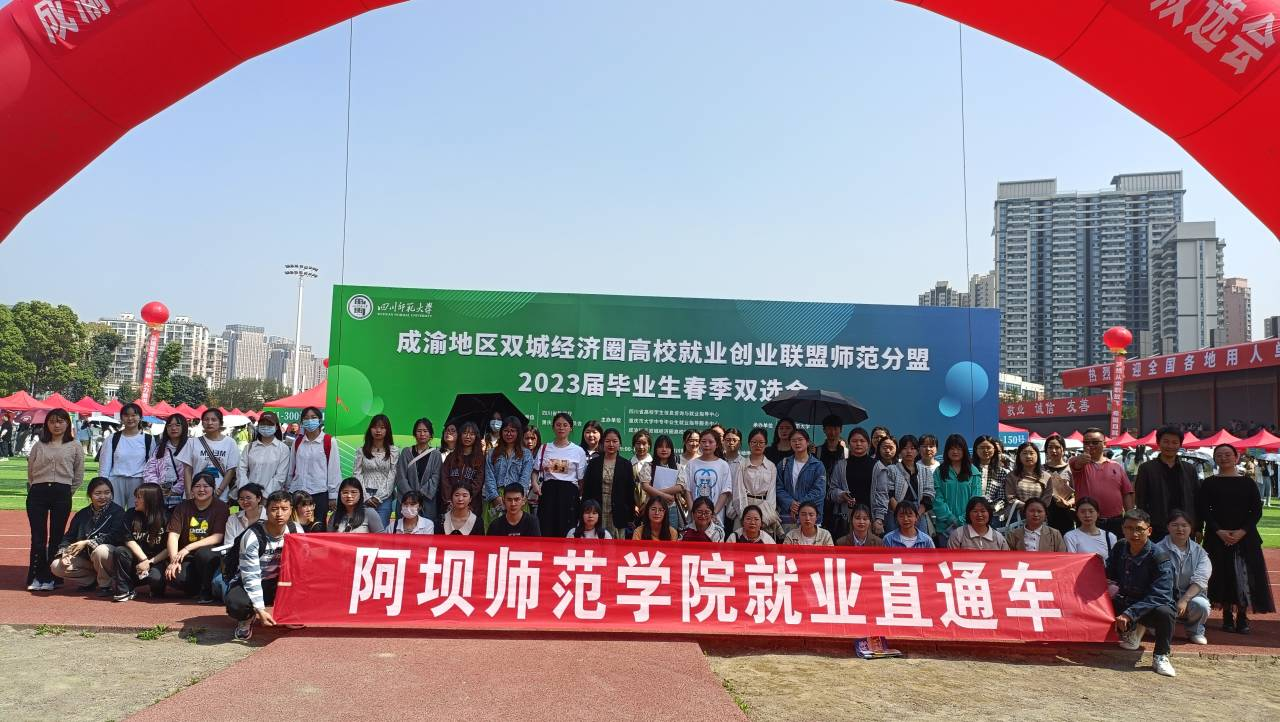 【教院讯】就业是第一民生,在全国上下学习贯彻党的二十大精神背景下,在学校即将迎来教育部本科教学合格评估冲刺背景下,教师教育学院主动作为、认真谋划,根据《中共阿坝师范学院教师教育学院委员会关于实现2023届毕业生各阶段就业目标及帮扶措施的通知》等文件精神和要求,教师教育学院积极应对规模空前的毕业生群体就业工作大考,有效促进2023届应届毕业生更充分、更高质量就业。在学院2023届毕业生就业领导小组邓志光书记、李强院长、范燕华副书记、王小琴副院长亲自挂帅和精心筹划下,教师教育学院举办了一系列针对2023届毕业生就业帮扶、指导和送人到岗专项活动。2023年4月15日,学院委派李明星老师带队,与10余名小教、学前专业毕业生一同前往四川师范大学成龙校区参加成渝地区双城经济圈高校就业创业联盟师范分盟春季双选会。