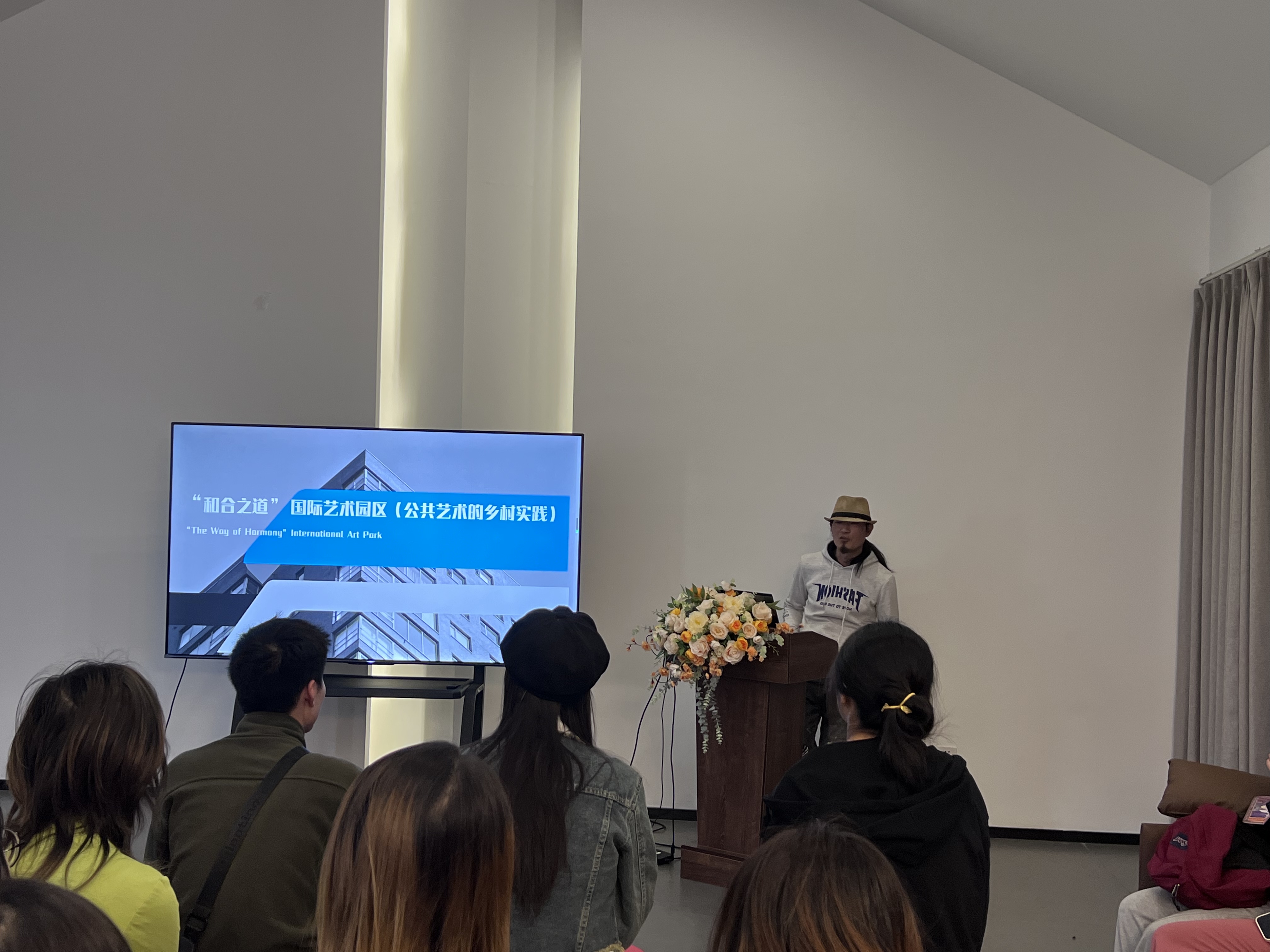 4月14日,“和合之道”国际艺术园区负责人王旭辉老师分享了题为《公共艺术的乡村实践》,向同学们讲解了艺术从最初的田野走上庙堂---脱离岩壁进入画框---从实用器具走向纯粹展厅---20世纪60年代以来---艺术又从美术馆走向了城市公共空间---从架上走向景观---现在又从城市走向了乡村。随后又带领同学们参观了园区内的公共艺术作品,通过理论加案例的讲解,使得同学们对于“公共艺术”在“乡村振兴”中的方法又多了一层理解。
