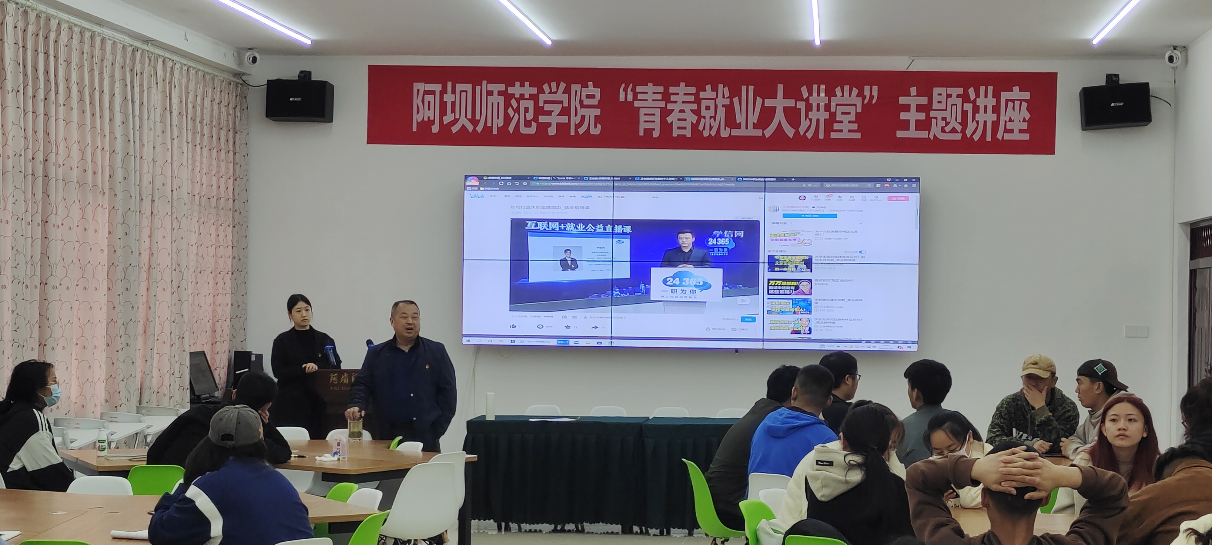 据悉,第1-2节课分别由范燕华副书记、王亚老师在B105教室担任主讲,范燕华副书记希望未落就业工作毕业生抓住即将到来的黄金5月落实工作,并表示学院接下来将积极联系相关用人单位集合学院学工队伍力量带领同学们到用人单位应聘,找到合适和满意工作。接下来,王亚老师结合前期对毕业生相关就业意向调研情况,针对性为毕业生提供就业手续、就业协议与劳动合同签署注意事项与维权、网签系统审核与材料回传等结合具体案例进行了细致入微的解说。第3-4节课分别由邓书记、龚维馨老师担任主讲,邓书记在现场逐一了解未落实就业毕业生具体情况,并提出的相关建议和要求,希望同学们充分发挥主观能动性,在学院帮助下尽快找到满意工作。之后,龚老师用详实的往届就业数据和具体案例向同学们讲述了当前基础教育行业就业形势和发展趋势、就业求职过程中应该注意的求职陷阱。第5-6节课李明星老师担任主讲,李老师针对当前学前教育、小学教育专业以及不同层次毕业生求职进程中遇到的困难和问题进行了逐一解答,并结合自身担任毕业班班主任指导就业工作相关经验与同学们进行分享。第7-8节课由顾鹏老师担任主讲,顾老师聚焦“求职必备素养”主题,围绕了解当前就业形势、职业的基础知识、做好职业选择进行了具体讲解。