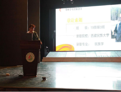 第二位是来自19级旅服专业3班的尕让索朗,他上岸于西藏民族大学民族学专业。在分享考研经验中,尕让索朗讲到,考研最重要的就是坚持,考研是一种信息战,考研过程中不要在乎别人的进度,按照自己的计划脚踏实地学习。