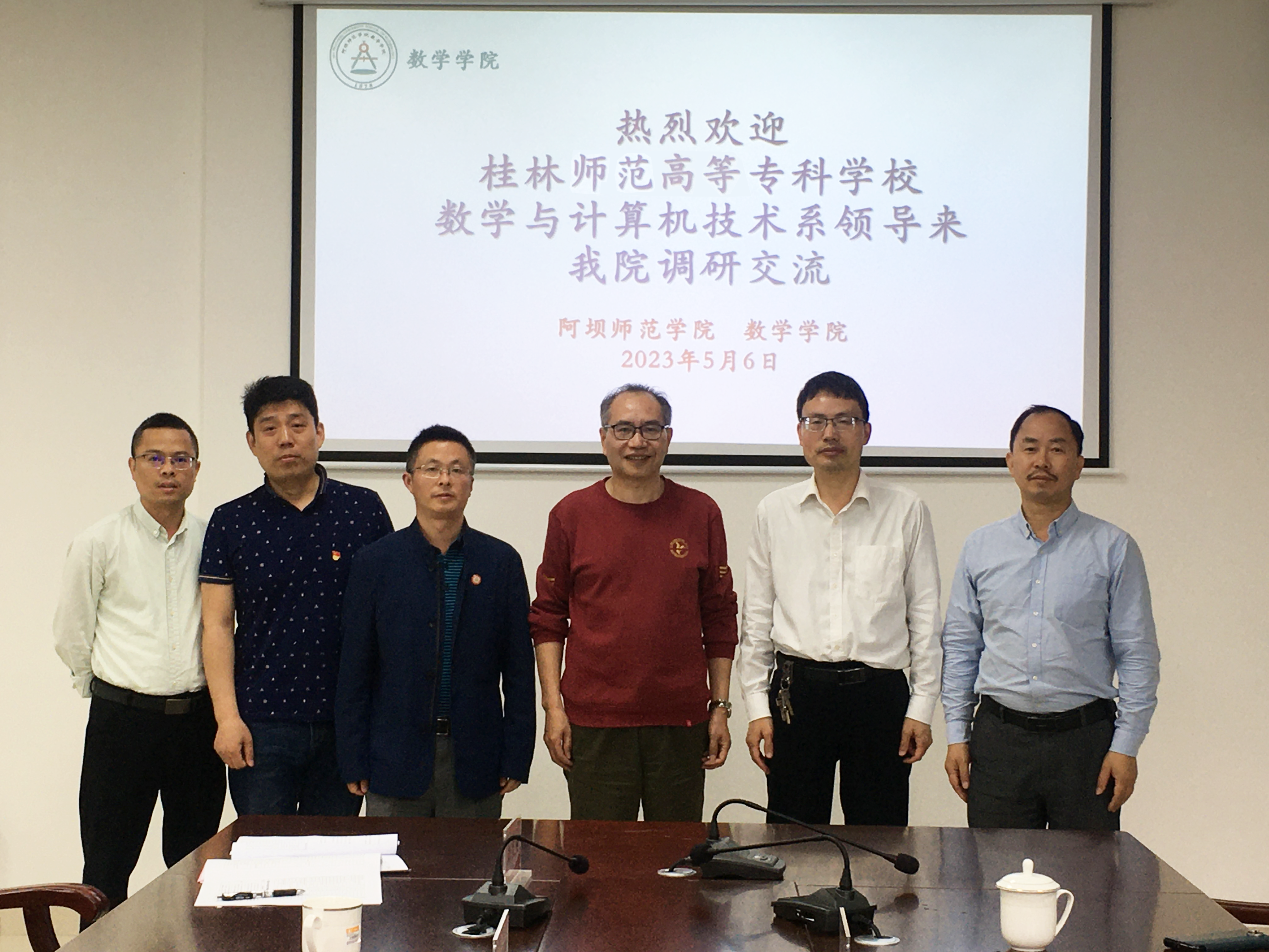 【本网讯】2023年5月6日下午15时,桂林师范高等专科学校数学与计算机技术系小学数学学科带头人赵寿祥老师等一行来我院考察交流,我院党委书记蒋自国教授,党委副书记、院长杨仕椿教授,副院长赵伟博士,数学与应用数学教研室主任蒲永燕老师,大学数学教研室主任蒲可莉出席会议。双方在实验楼C412会议室举行交流座谈会,会议由党委书记蒋自国主持。