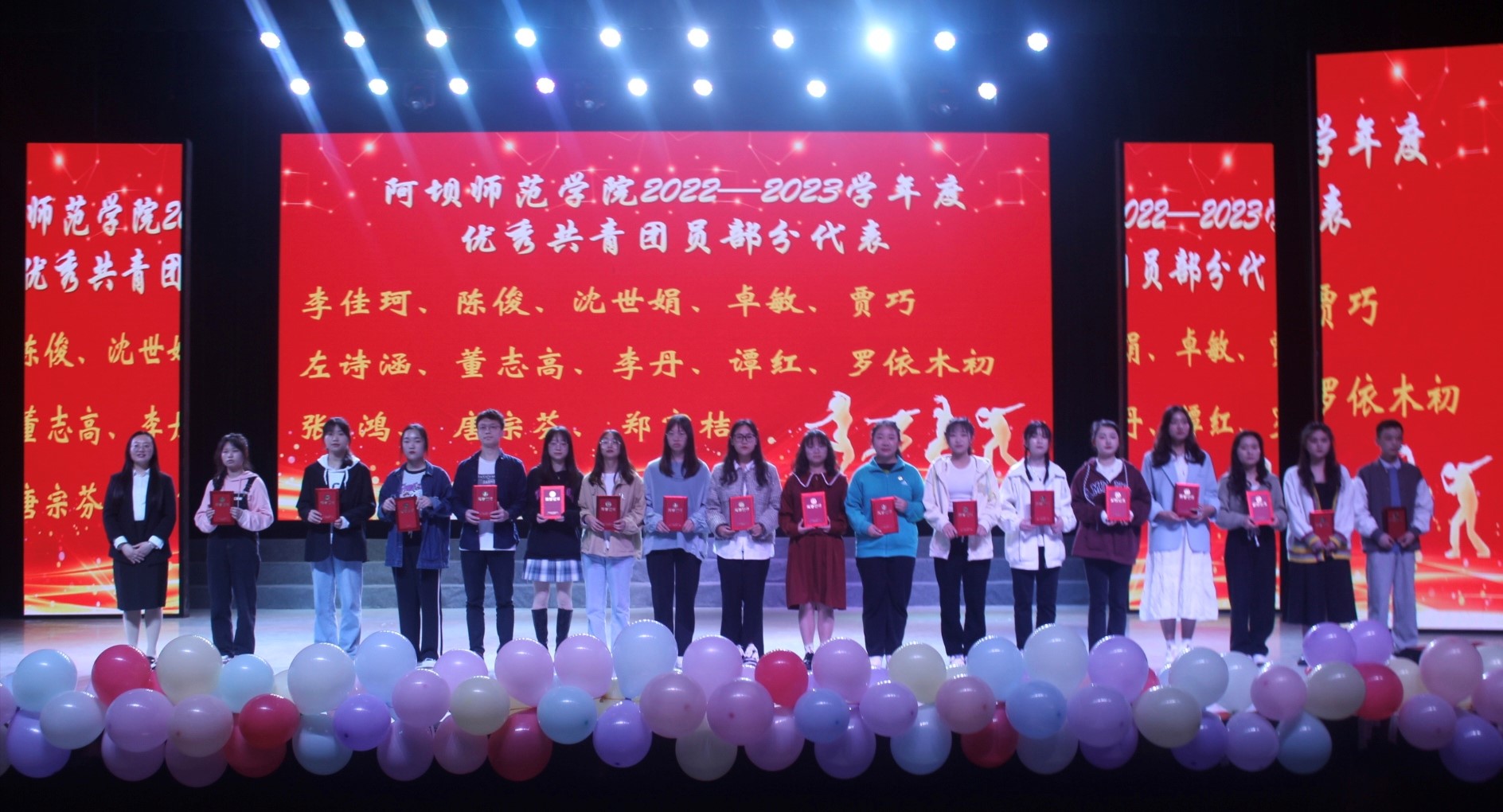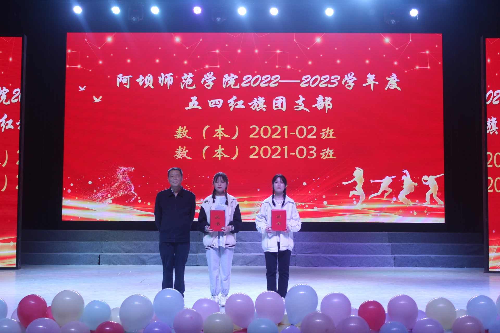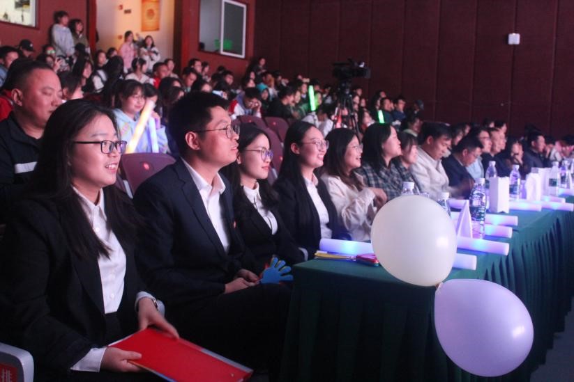 在游戏互动《数字抱团》过后,2022级应统1班带来小品《纳新》,以搞笑表达深情,诙谐中夹杂温情让悲伤的毕业季也能充满欢声笑语。接着,舞蹈《爱你、travel》引爆了全场气氛。由2021级同学带来的朗诵《满江红》。颁奖环节,由我院团委书记兼学工办副主任金玉洁老师、我院教师夏冰副教授为2022-2023学年度优秀共青团员、五四红旗团支部颁发证书并合影留恋。