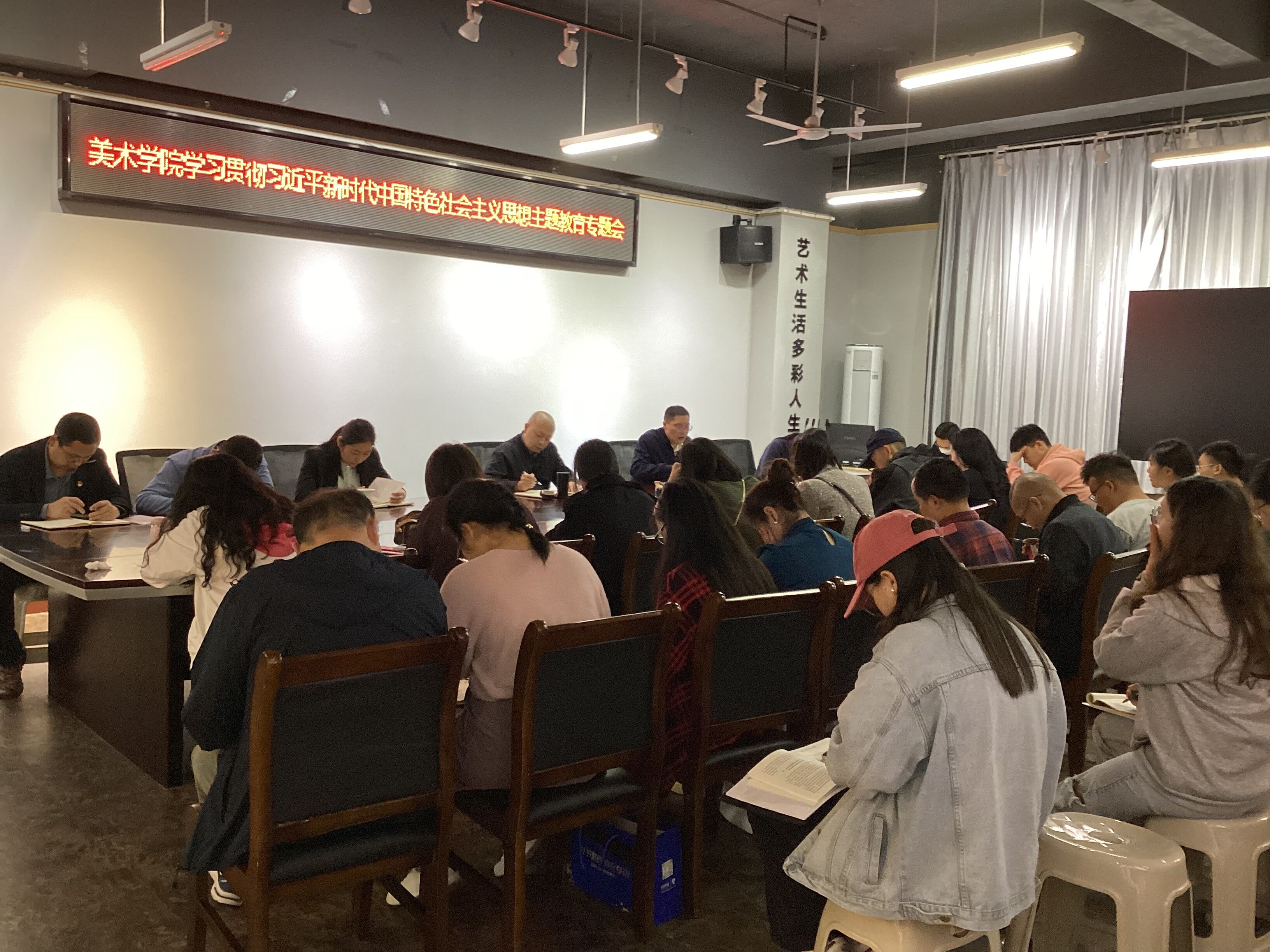 【本网讯】2023年5月5日19:00,美术学院在学院会议室召开学习贯彻习近平新时代中国特色社会主义思想主题教育动员大会。美术学院党委副书记马小勇同志主持并作动员讲话、传达学习主题教育相关文件,学院全体师生党员参会。