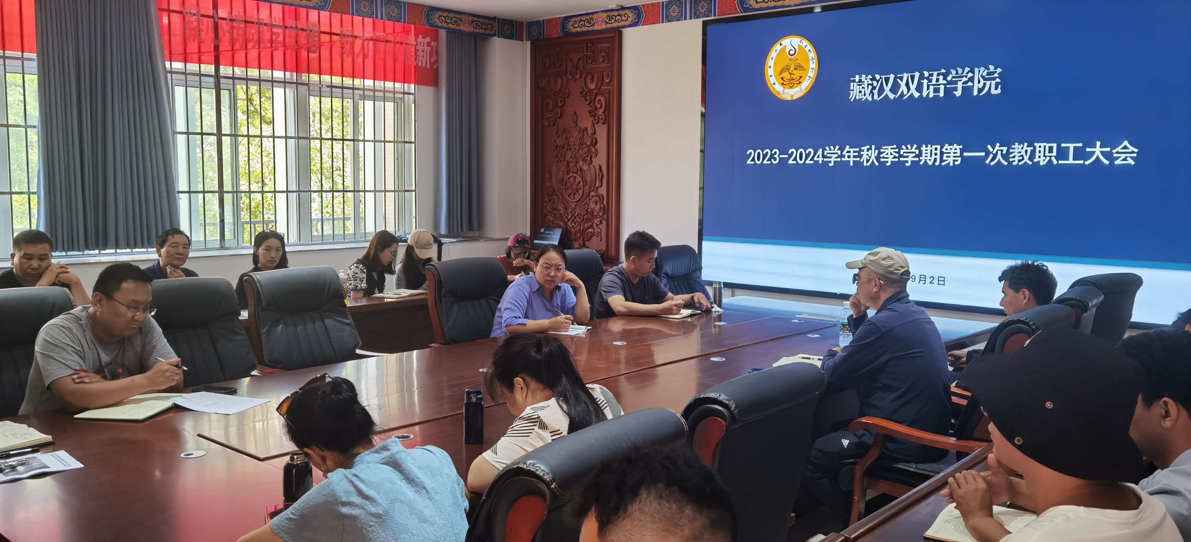 【双语讯】2023年9月2日14:30,藏汉双语学院在F205会议室召开本学期第一次教职工大会。会议由学院党委副书记霍续龙同志主持,全院教职工参会。