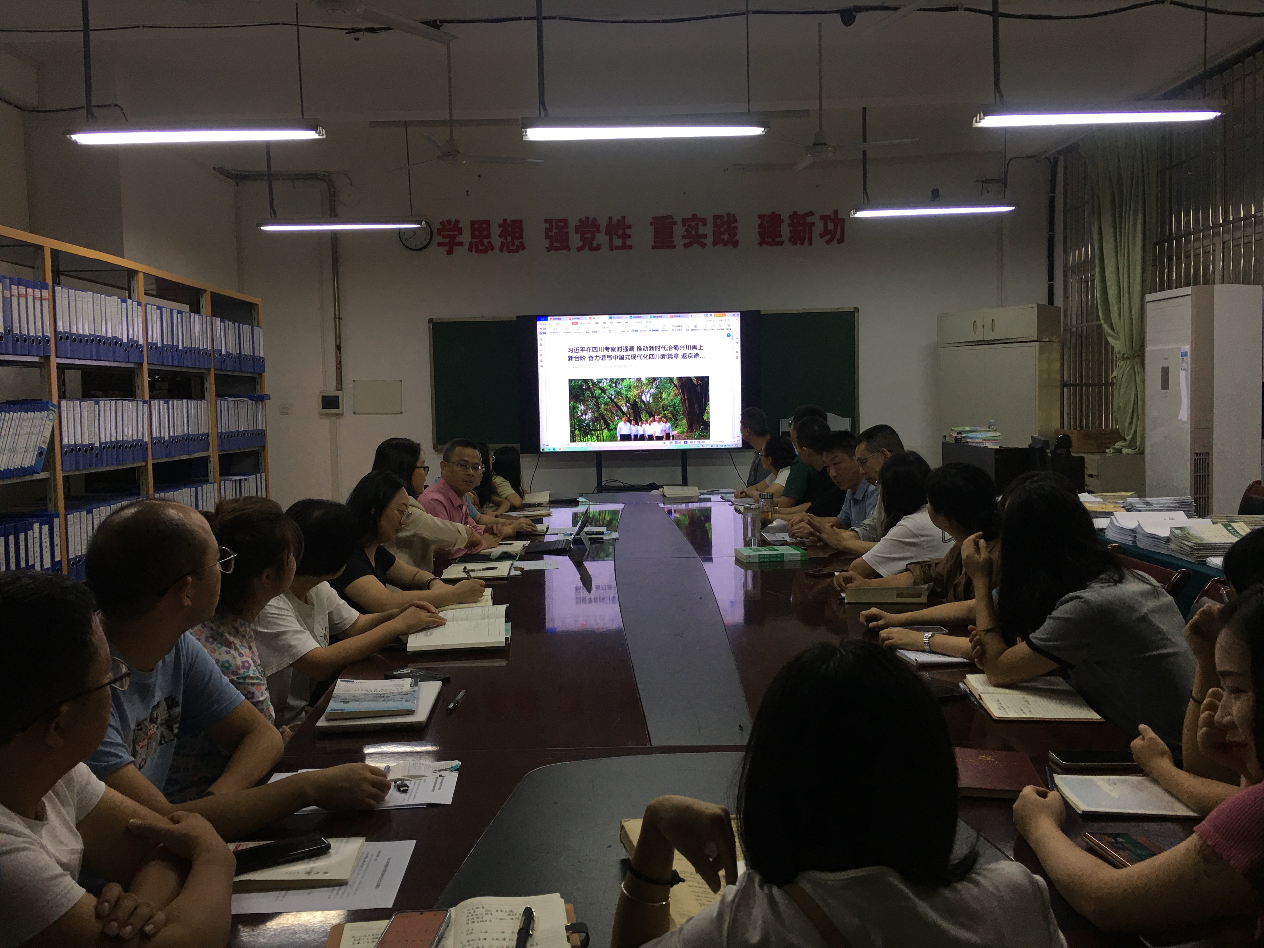 会议伊始,蒋自国书记带领全体集中学习习近平总书记来川视察重要指示精神,并对学院开展的主题教育进行汇报。