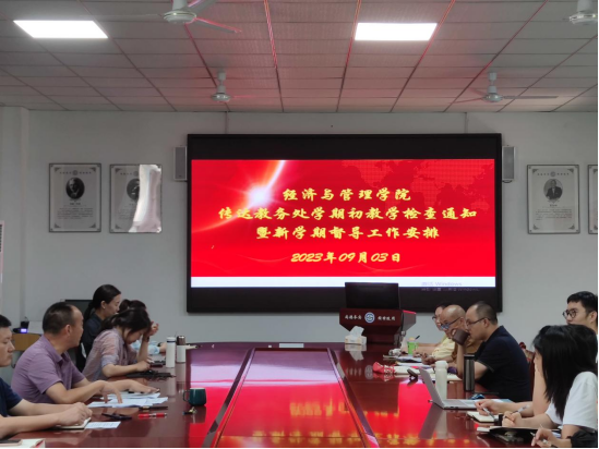 下午,经管学院针对开学教学准备工作开展会议,全院教职工参与此次会议,学院党委书记薛国喜主持会议。会议主要围绕新学期教学工作安排、核查教师教学资料准备情况及2023级新生报道工作安排等内容展开。