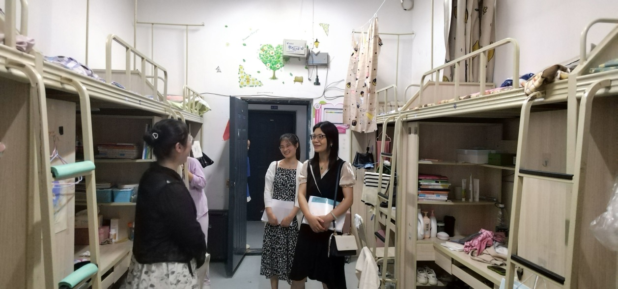 【教院讯】为更好了解专升本新生到校情况,了解其思想动态以及生活情况,加强对新生宿舍的管理,帮助新生更快转变角色,尽快适应大学新生活,教师教育学院于9月4日21:40开展走访专升本新生寝室活动。党委副书记范燕华、第二党支部书记顾鹏、班主任王璐老师亲临现场看望新生。