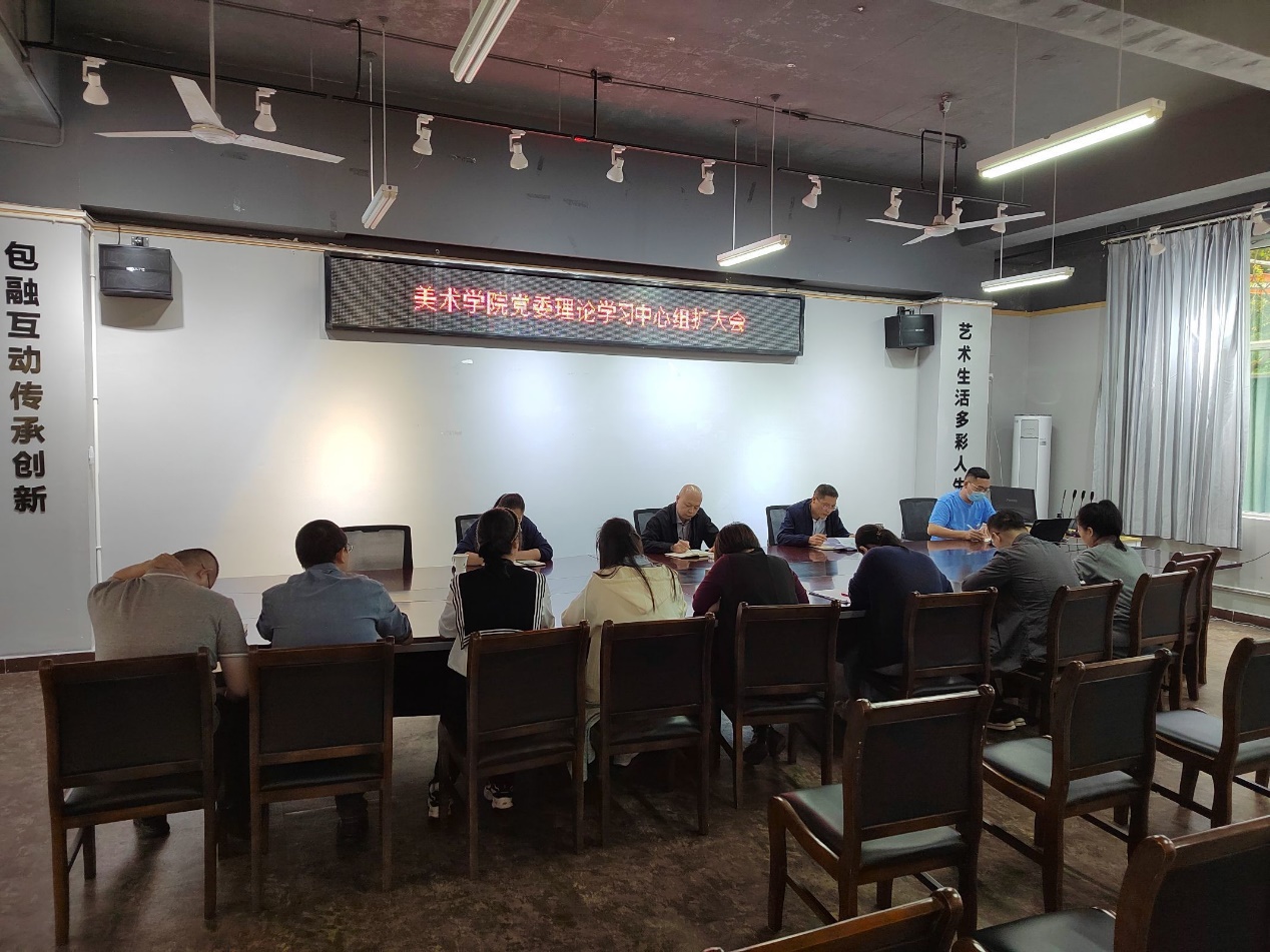 本网讯:2023年9月20日,为全面深入学习宣传贯彻习近平总书记来川视察重要指示精神,推动习近平总书记重要指示精神落地落实,美术学院党委召开了理论学习中心组(扩大)会。会议由美术学院党委副书记马小勇同志主持,美术学院全体党委委员、教研室主任及第一、二党支部书记参与了此次学习。