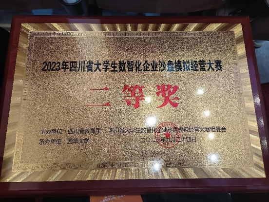 【本网讯】2023年9月23日至9月24日,由四川省教育厅主办,西华大学承办、新道科技股份有限公司技术支持的“2023年四川省大学生ERP数智化沙盘模拟经营大赛”拉开帷幕,川内各大高校共114支队伍参加了本次比赛,我校以经济与管理学院在省级复赛(突围赛)中选拔出来的1支队伍,代表学校参加比赛,并荣获四川省二等奖。