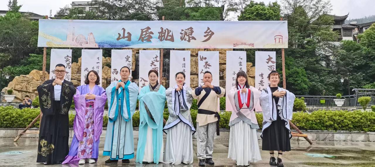 参与书画展演的老师们身着汉服,以中国画与书法艺术形式,创作书画作品表现水磨桃源胜景、民族风情、人文风韵。罗永禄、王望老师创作的书法作品,刘珂、马丽、杨飞琰、刘小娟、张娟、苏亮、林聪、秦树梅老师创作的国画作品,题材多样、风格各异。一张张精美作品宛如新时代汶川水磨的“富春山居图”,让游客有种穿越时空的奇妙体验,同时生动展示了汶川“艺术乡创”理念,厚植乡村文化底蕴,挖掘乡村民族文化资源的可喜成果。