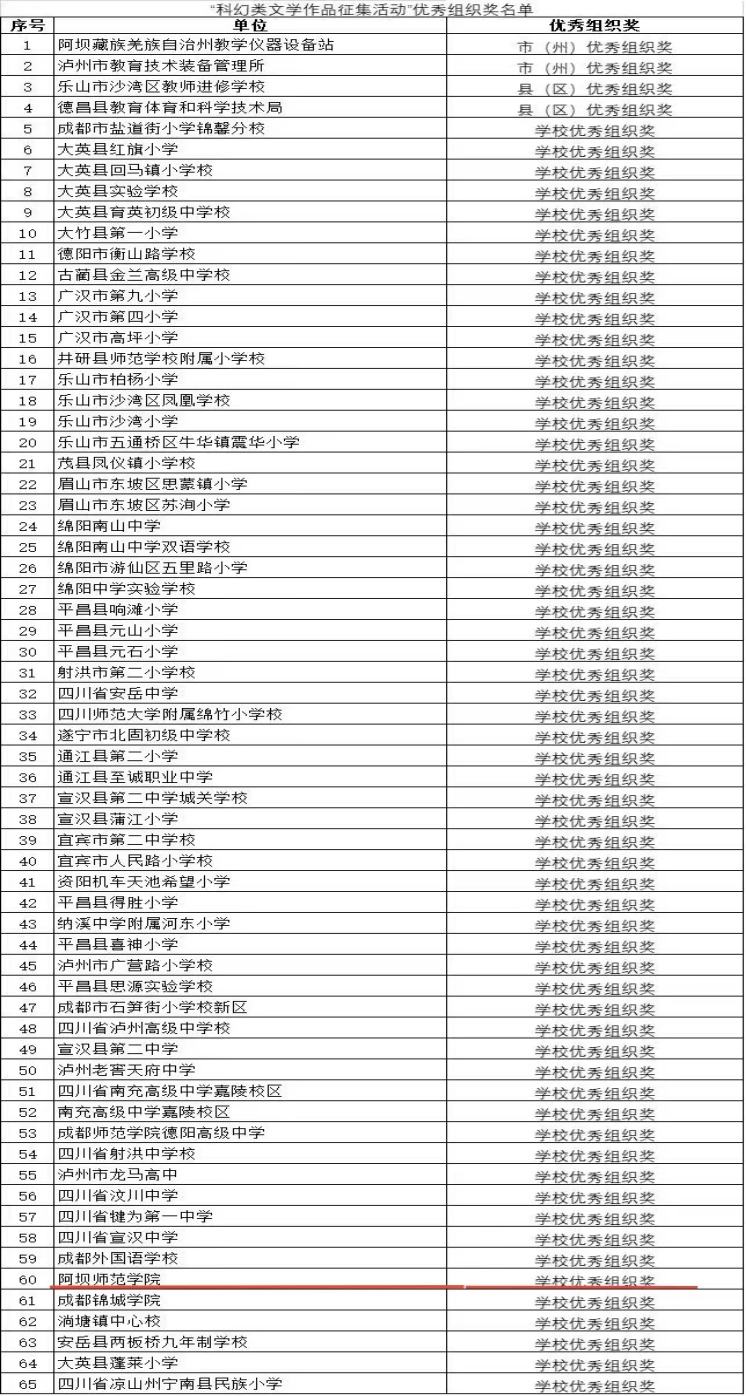 【图3】“科幻类文学作品征集活动” 优秀组织奖获奖名单