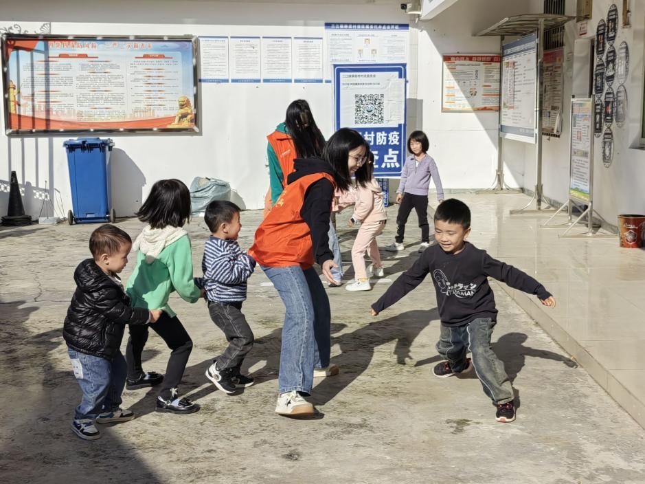 活动伊始,志愿者分成四组准备开展志愿活动。一、二组同学主要负责面向社区老年人进行志愿服务,他们耐心地向老年人宣传了如何预防老年痴呆,教学健康手指操,帮助老年人解决智能手机使用等日常生活中的问题;三、四组同学主要负责组织社区儿童开展多种趣味游戏,辅导儿童完成作业并交流学习方法。志愿活动接近尾声之际,志愿者们还为社区老年人送去大米与菜籽油等生活用品,为儿童送去直尺与蜡笔等学习用具。