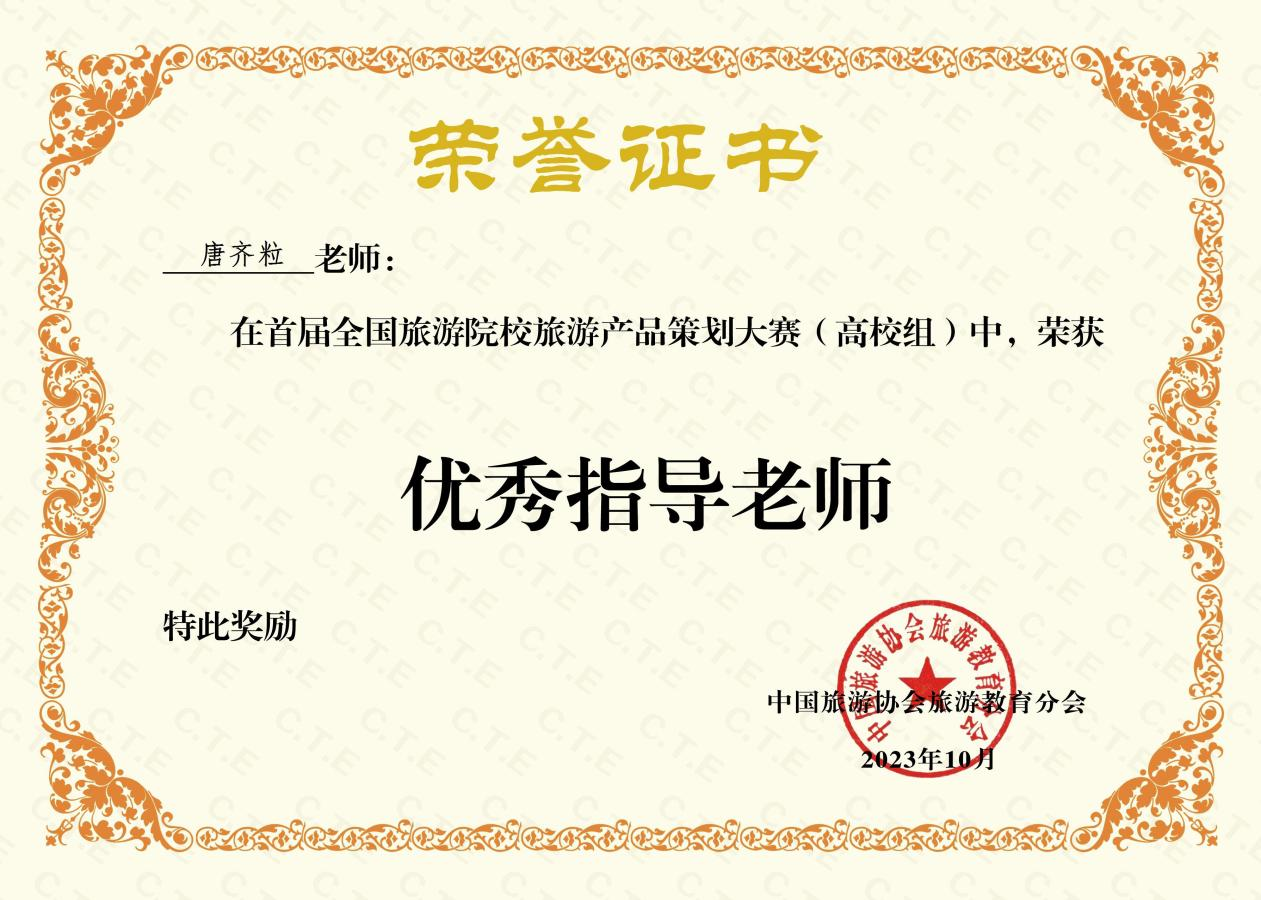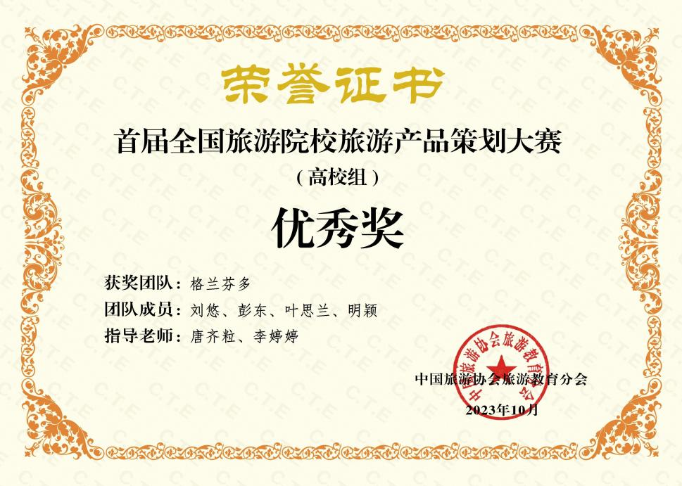 【本网讯】2023年10月17日,在刚刚结束的首届全国旅游院校旅游产品策划大赛中,阿坝师范学院经济与管理学院代表队在唐齐粒老师的带领下以其出色的策划方案,在903份合格作品中脱颖而出荣获高校组优秀作品。此次大赛由中国旅游协会旅游教育分会与浙江旅游职业学院共同主办,吸引了来自全国316所旅游院校的参赛队伍,共提交了929份作品。大赛以“发展青年匠心,策划精彩旅行”为主题,旨在激发青年学生的创新思维和策划能力,提升旅游行业的创新水平和服务质量。