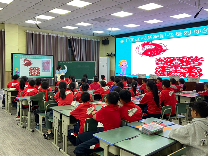 2023年11月1日下午14:00,林聪老师带领21级美术学专业4班陈蝶同学送教汶川八一小学5年级1班,参与活本次过的的小学生一共38名,剪纸作为中国传统民间美术的代表,与我们的日常生活联系紧密,林老师和陈蝶同学在课前认真研读课标和教材,并结果五年级同学的学情设计了教学方案。在课堂中陈蝶通过图片分析和游戏设计教学内容,强化师生之间的互动,来让同学们掌握了“对折剪纸”的含义、方法,并通过让同学们分小组合作,动手制作了一幅完整、有主题的“对折剪纸”拼贴画。通过在本次送教进校园的活动,陈蝶同学在课堂互动设计、教学板书设计等能力上都有了明显的提升。