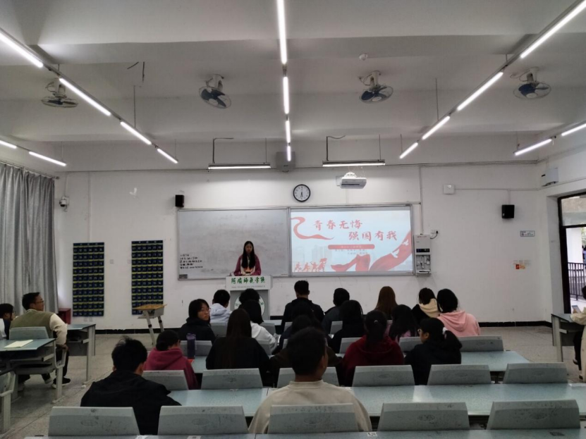 【本网讯】“筑牢信仰之基,补足精神之钙,把稳思想之舵”。为深入学习贯彻习近平新时代中国特色社会主义思想,加强对同学们的思想教育,培养有理想的新时代好青年,23级思政三班于11月5日18:00开展了第三次团员和青年主题教育,本次以“青春无悔,强国有我”为题。