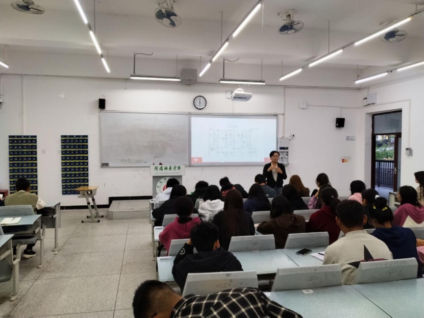 在主题教育过程中,雷颜菲同学首先阐释了学习习近平新时代中国特色社会主义思想对党、对国家、对社会以及对当代青年的重大意义。其次为提升同学们理论水平,贯彻落实读原著、学原文、悟原理的精神,为同学们推荐了习近平新时代中国特色社会主义思想的一些书目。并就《习近平著作选读(第二卷)》中“全面推进中国特色社会主义法治体系建设”的学习情况向同学们作了学习分享。最后,提问当代青年怎样学习习近平新时代中国特色社会主义思想,与同学们进行了现场互动。
