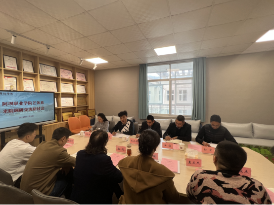 首先音乐舞蹈学院院长张刚介绍了学院参会人员,讲述了我院学科建设、人才培养、教学管理、师资队伍等工作情况。阿坝职业学院学工部副部长、团委书记、艺术与体育系副主任苟宏伟对阿坝职业学院艺体系相关工作情况进行介绍。