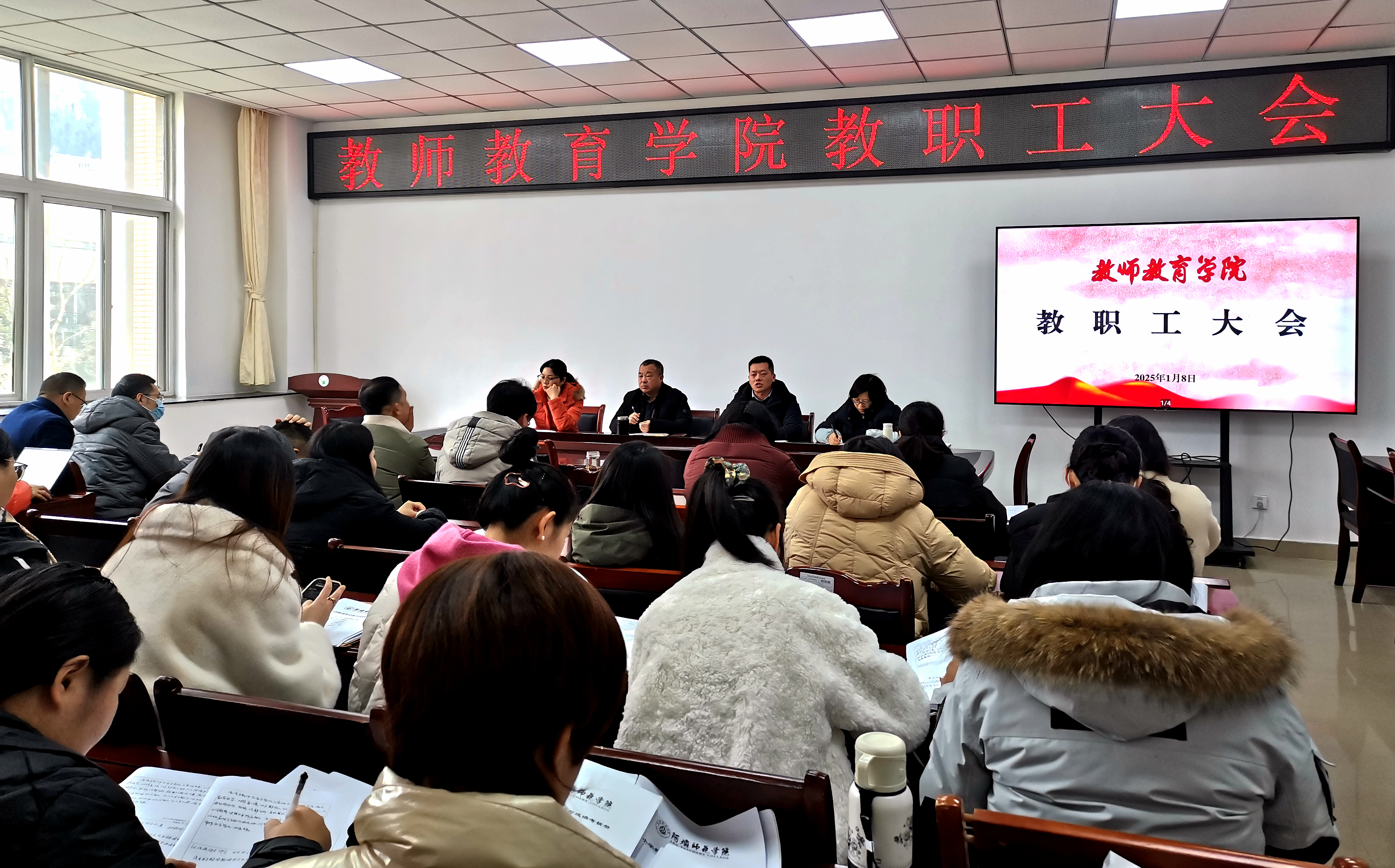 【教院迅】1月8日下午,教师教育学院在树人楼B305会议室召开2024-2025-1学期期末总结暨教职工大会,学院全体教师参加了会议,会议由院长徐波主持。