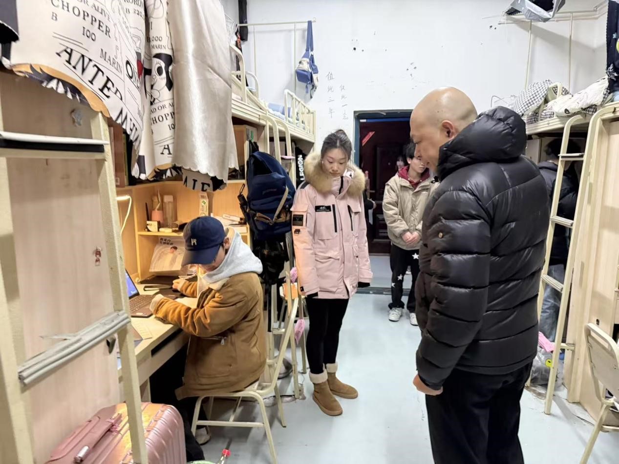 走访过程中,领导老师亲切地与同学们进行交流,详细了解同学们的返校行程、新学期学习计划及学习生活需求等。同时提醒大家调整学习状态,尽快适应新学期的学习节奏,大家要注意寝室用电安全与消防安全,做到不使用大功率电器,并定期检查消防设施是否完好,确保学习生活安全。