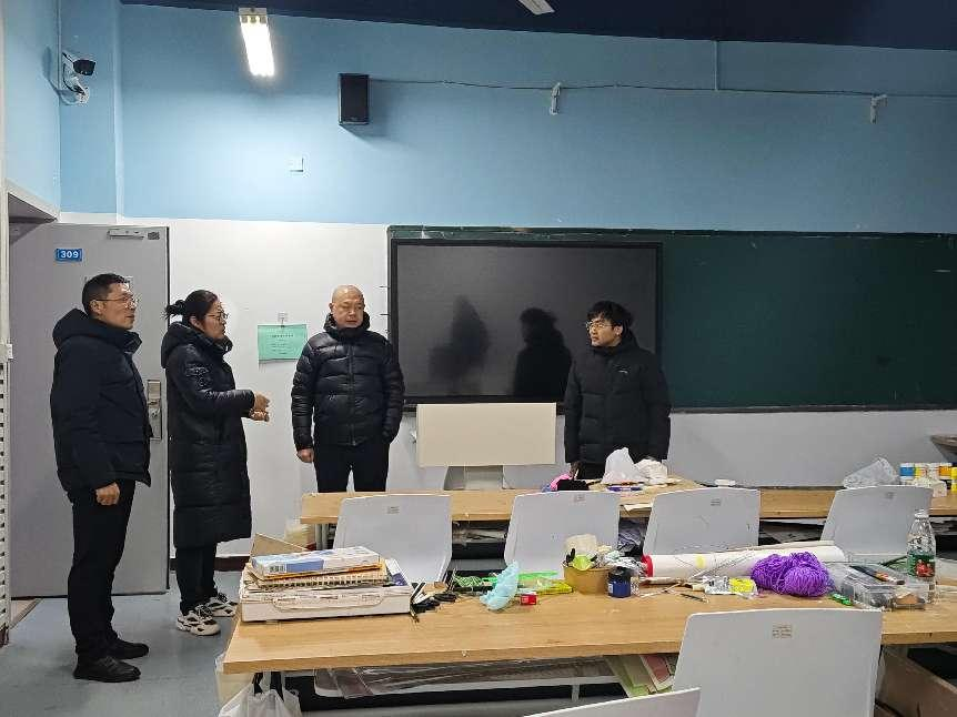 本网讯:2025年2月22日,美术学院组织开展实验实训场馆安全隐患排查整治专项行动。院长黄洋、党委(副)书记马小勇、副院长焦凤带队,在实训管理员许孟陪同下,对全院实验实训场所进行全方位安全检查,为新学期教学工作顺利开展保驾护航。