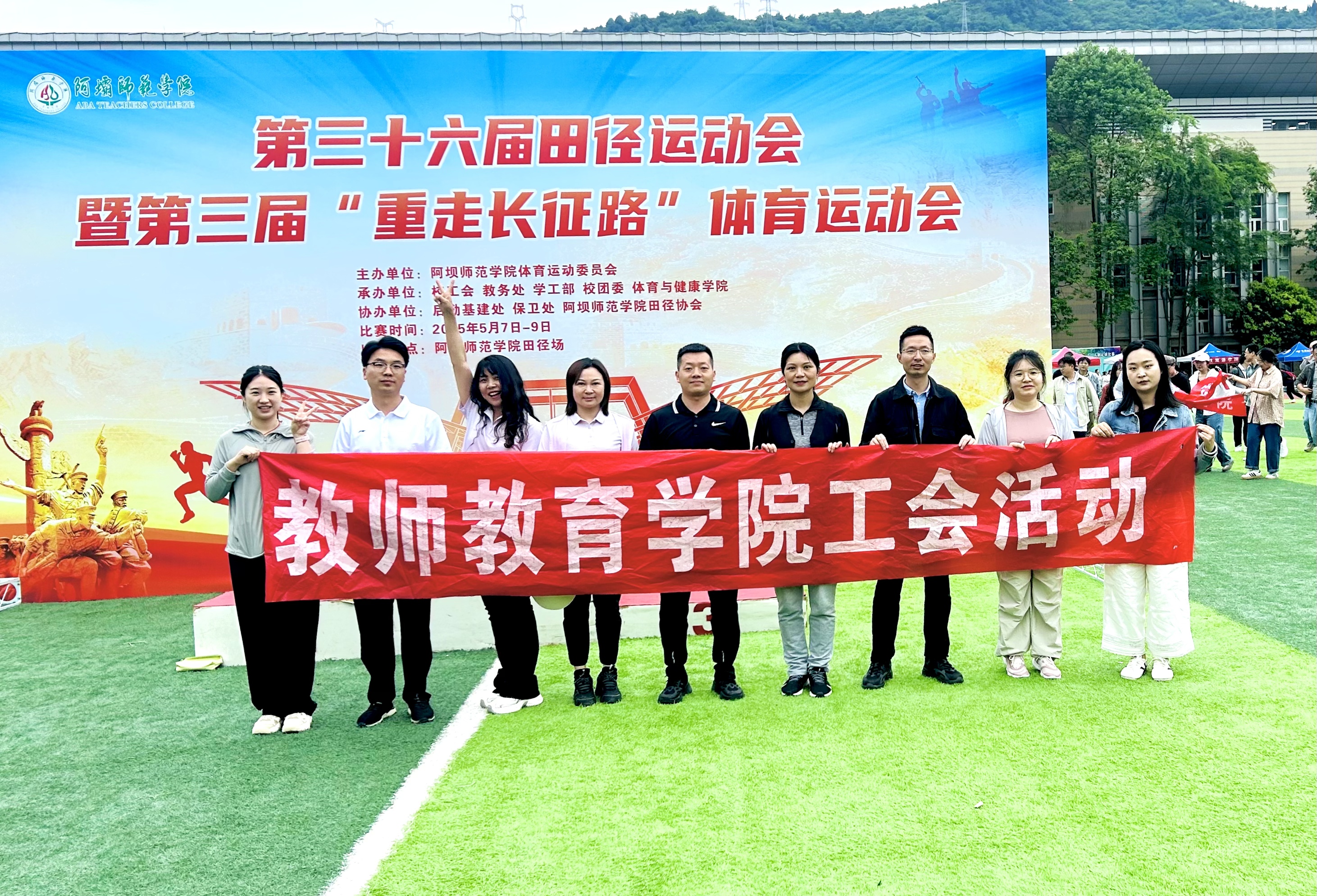 【教院讯】2024年5月7日9:00,由学校体育运动委员会主办,校工会委员会、教务处、学生工作部、校团委、体育与健康学院承办的第三十六届田径运动会暨第三届“重走长征路”体育运动会在田径场隆重举行,5月9日11:00在学校田径场圆满闭幕。教师教育学院工会高度重视,学院领导与教职工共同参赛,教师教育学院工会荣获“体育道德风尚奖”“优秀奖”。