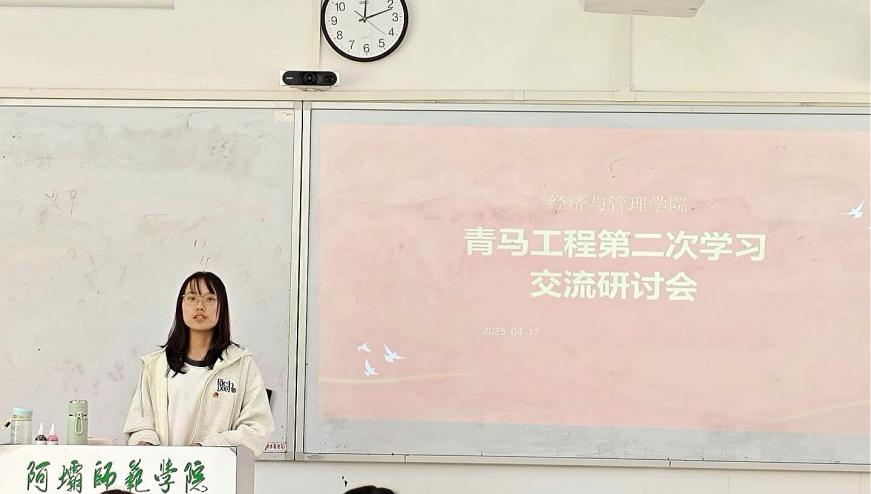 【本网讯】为深入贯彻习近平新时代中国特色社会主义思想,进一步加强青年马克思主义者培养,提升学员的政治素养与实践能力。2025年4月17日中午12:10,经济与管理学院在树人楼F103成功举办了第五期青年马克思主义者培养工程第二次学习交流研讨会。本次研讨会旨在通过交流分享,凝聚青年力量,激发学员的学习热情与责任感,为培养新时代合格的青年马克思主义者搭建平台。活动吸引了经济与管理学院青马工程40余名学员的积极参与。