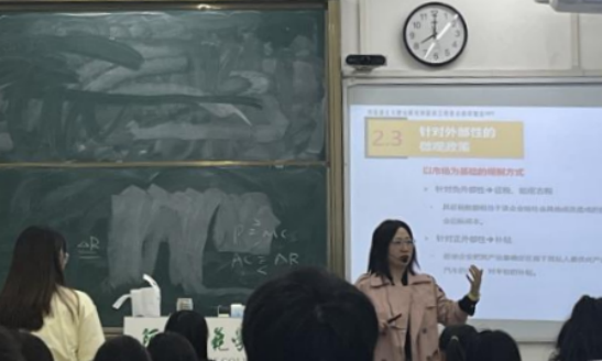 在课堂上,魏旭辉老师以丰富的经济理论和生动的案例为依托,全面而深入地剖析了市场失灵的表现形式、造成的影响以及可能的治理策略。她解释了垄断对市场竞争机制的破坏以及各国的治理理念,阐释了外部性在市场经济下条件下如何加以约束和规范,也特别介绍了关于外部性治理的国内外探讨,为学生补充讲解科斯定理在外部性治理上的应用。魏老师的讲解深入浅出,生动活泼,不仅让学生们深刻理解了市场调节机制的作用逻辑,也激发了他们从生活环境中发现经济学知识的兴趣。