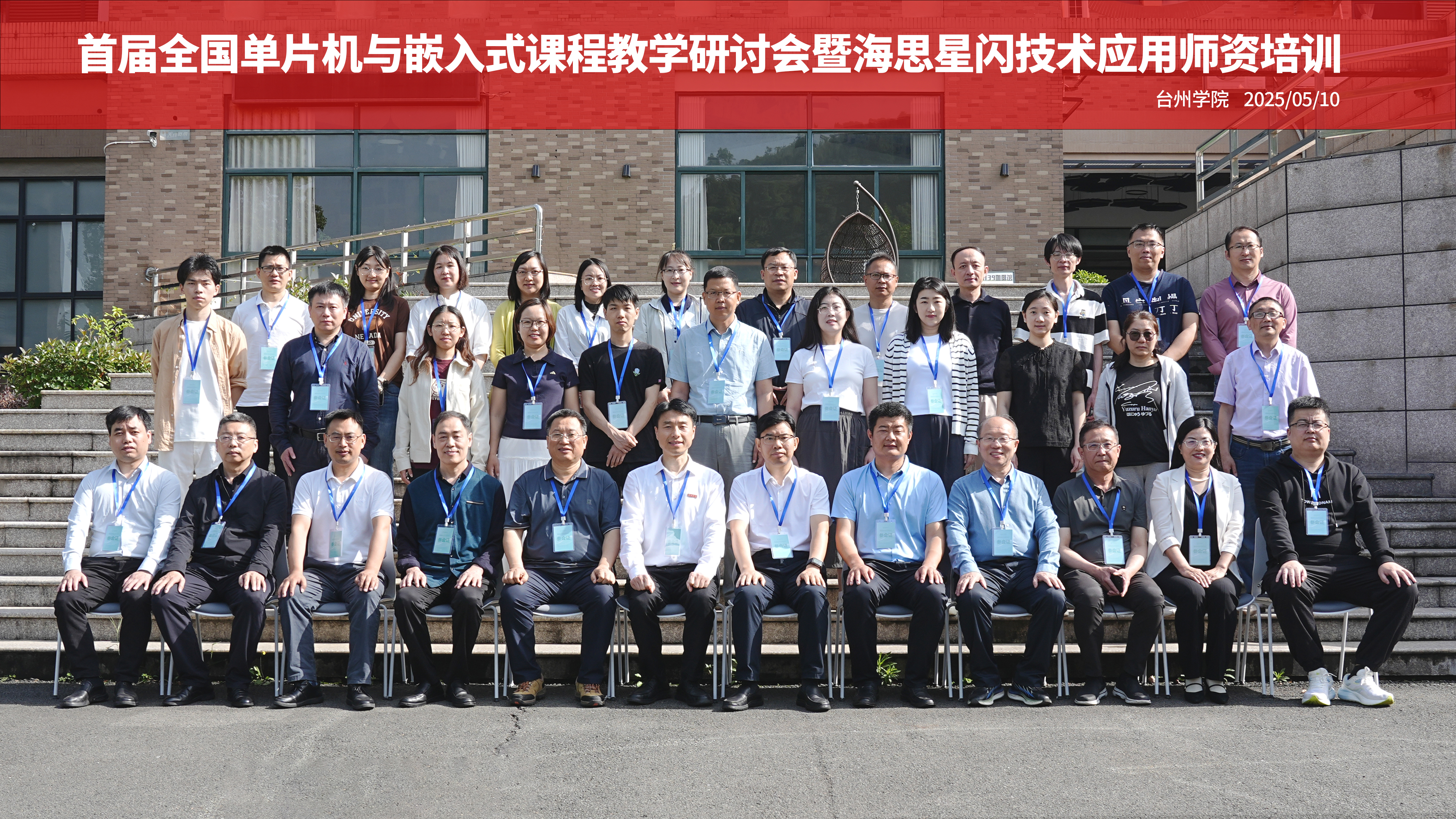 【本网讯】为深化产教融合、推动教学改革创新、推广国产芯片技术应用,2025年5月9日至11日,以“星闪智联·产教融合·AI赋能人才培养”为主题的“首届全国单片机与嵌入式课程教学研讨会暨海思星闪技术应用师资培训”在浙江台州学院成功举行。会议采用线上线下同步模式,汇聚全国高校教师与行业专家,共探智能化AI时代单片机与嵌入式课程改革路径,助力高素质工程技术人才自主培养。我院物理与电子电气工程学院单片机与嵌入式系列课程教学团队教师莫建麟、邹富成一行参加了此次研讨会。