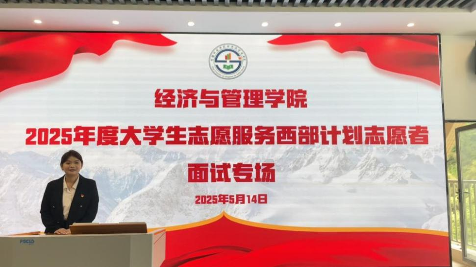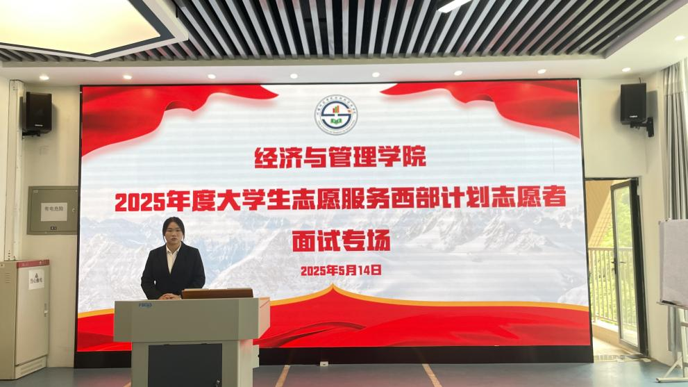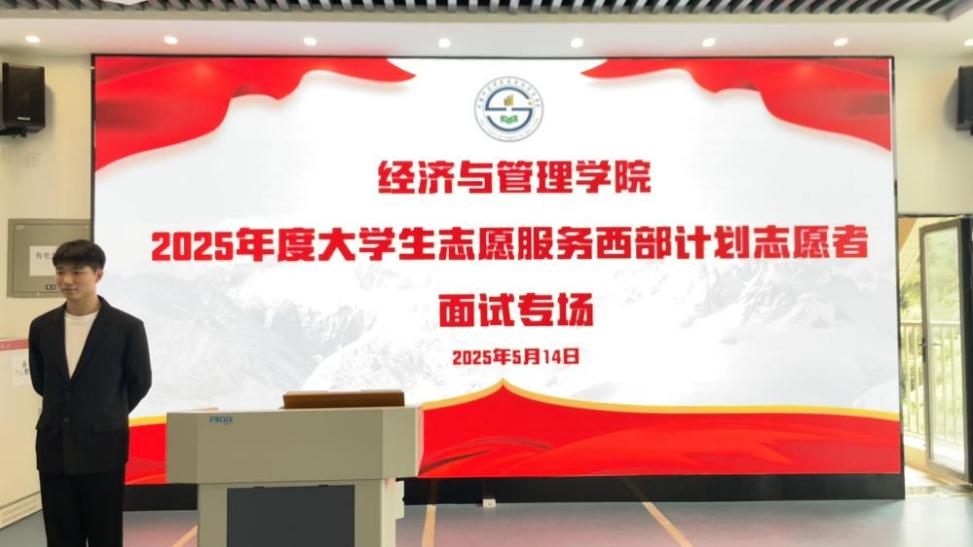 【本网讯】为响应国家“西部大开发”战略号召,推动青年志愿服务与乡村振兴深度融合。经济与管理学院于2025年5月14日15:00在实验楼C501成功开展了西部计划志愿者面试活动。此次面试旨在选拔出一批优秀的志愿者,投身西部建设。本次面试的老师有学院党委书记薛国喜、学院团委副书记马琳、学院第二党支部纪检委员白玛措、学院辅导员张小威、次仁次姆。