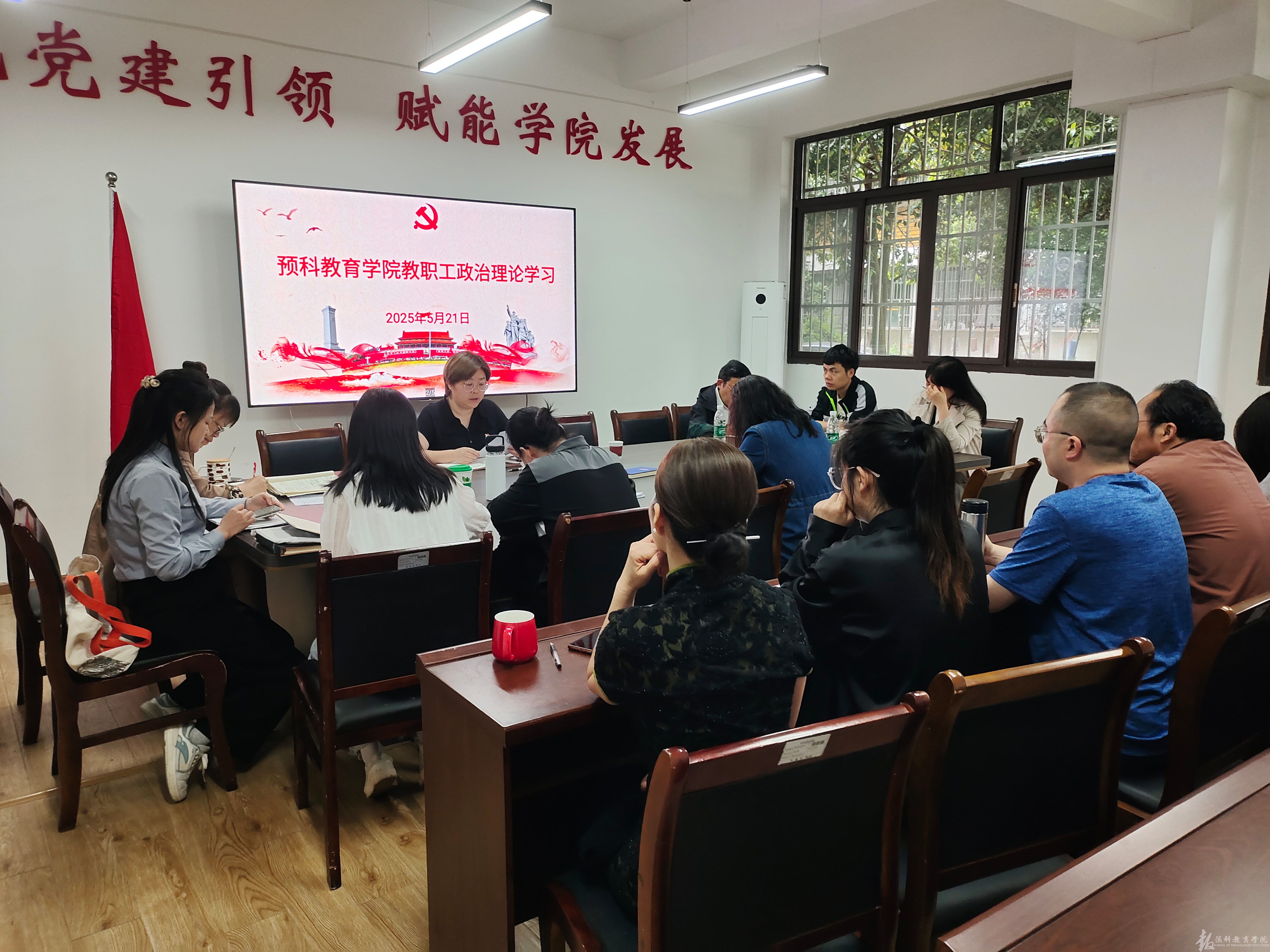[本网讯]2025年5月21日下午14:40,预科教育学院全体教师在北校区106会议室开展教职工政治理论学习,学习会由学院党总支副书记周雪支持并主讲。