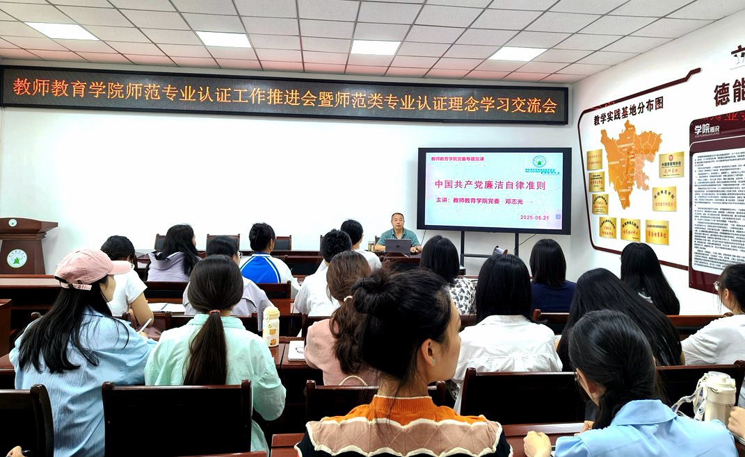【教院讯】为推动党纪学习教育走深走实,进一步提高党员干部廉洁自律意识,筑牢拒腐防变的思想防线,永葆忠诚干净担当的政治本色。5月21日,教师教育学院在B305会议室召开《中国共产党廉洁自律准则》专题学习会,学院26名预备党员及发展对象参会。会议由学院党委书记邓志光主持。