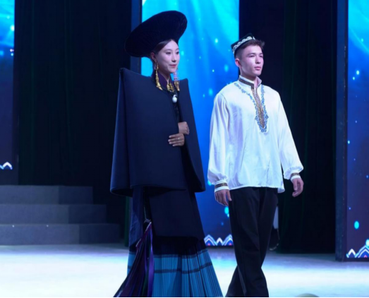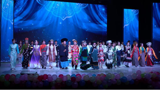 晚会现场最令人瞩目的当属“霓裳华彩・民族服饰走秀” 节目。随着悠扬的民族音乐响起,各民族学生依次走上舞台,展示绚丽多彩的民族服饰。不同民族元素的巧妙结合,碰撞出独特的火花,展现出中华文化多元一体的独特魅力,赢得现场阵阵惊叹与掌声。这不仅是服饰的展示,更是中华民族共同体的文化认同、促进各民族文化交流和民族团结的生动体现,是“各美其美,美人之美,美美与共,天下大同”的主题对话。