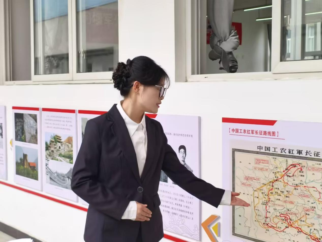 此次比赛,九名选手分为两支队伍,分别前往红色文化展廊的C栋和D栋进行讲解,宣讲内容聚焦红军长征在阿坝的历史故事展开。同学们包含热忱,将一段段故事娓娓道来,深情赞颂了中国共产党人的坚定信念,生动呈现了红军长征的伟大精神。
