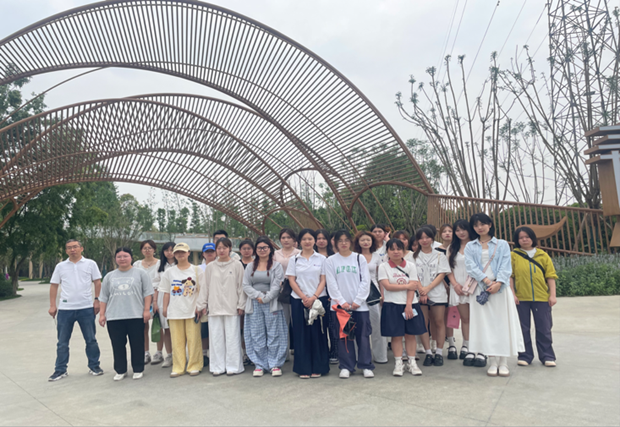 本网讯:根据教学大纲要求,2022级公共艺术专业1、2、3班全体38名同学由晏安、费作芽两位老师带队,于5月21日外出开展了《景观性公共艺术设计见习》课程实践,绕课程重点中景观与艺术的融合,公共空间的创意,营造的核心要点,先后前往清水河生态公园和三道堰青岗村。清水河生态艺术公园作为本次见习的第一站,其丰富多样的公共艺术作品与优美的自然景观,相互映衬,这里依托清水河资源,生态田园景观,精心打造的郫都区最美生态水花园。公园由活水公园、听水公园、戏水公园、品水公园和闻香公园五大主题组成。跨德源、友爱镇清水河两岸接壤区域,占地700余亩是“水润蜀都、生态郫都”的一张生态名片,同学们漫步其中观察到充满创意的景观小品等这些作品巧妙的利用的形体等自然元素形成了独特的视觉效果,也让同学们对景观性公共艺术在城市休闲空间中的作用有了更深刻的认识。随后,师生们来到了三道堰青杠村的香草湖湿地公园,这里的公共艺术作品更注重与乡村文化和自然生态的融合,旨在促进乡村文化的传承与发展,让学生们深入了解到在乡村景观中融入公共艺术不仅可以美化环境,还能成为乡村旅游的特色亮点。