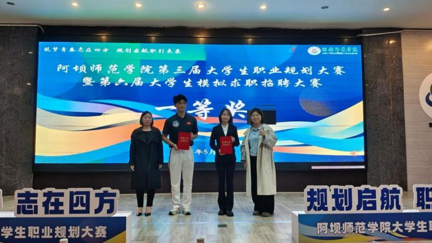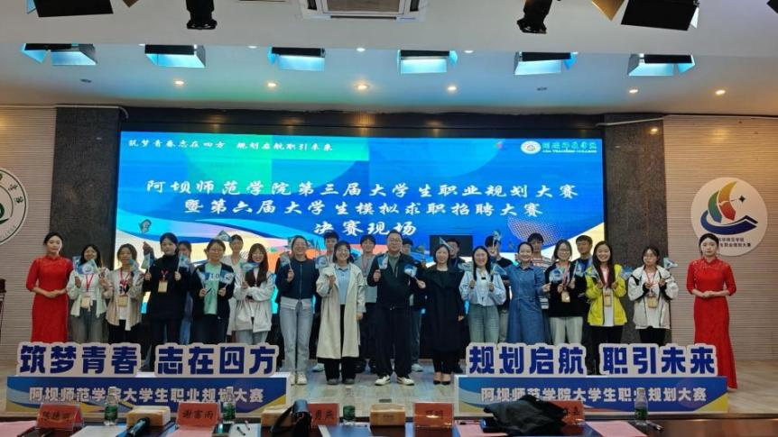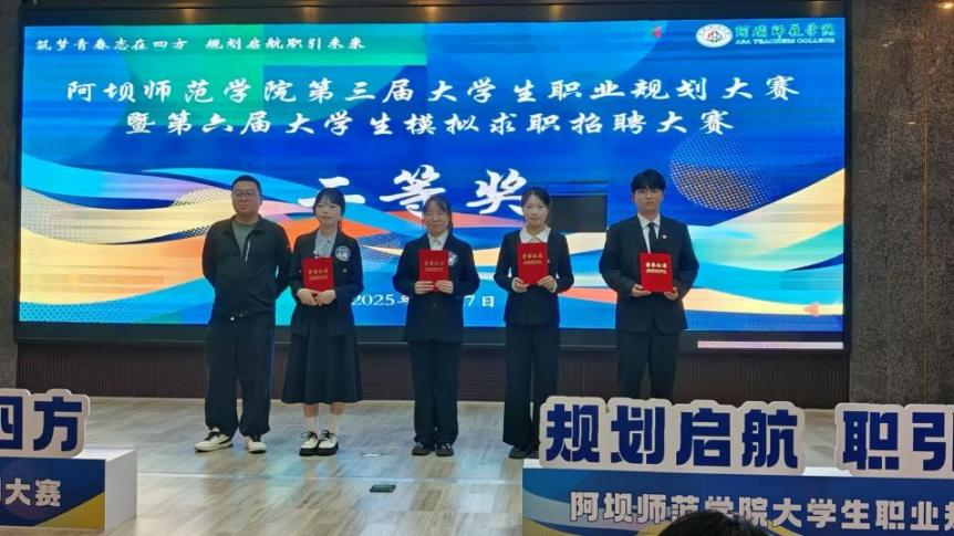【本网讯】为深入贯彻落实党的二十大关于促进高校毕业生高质量充分就业的决策部署,引导学生树立科学的职业规划理念,提升就业核心竞争力,经济与管理学院于2025年5月27日18时30分在学术报告厅隆重举办阿坝师范学院第三届大学生职业规划大赛暨第六届模拟求职招聘大赛。本次大赛由学校就业创业指导中心、共青团阿坝师范学院委员会主办,经济与管理学院、大学生就业与创业协会联合承办,设置"成长赛道"与"就业赛道"两大竞赛单元。