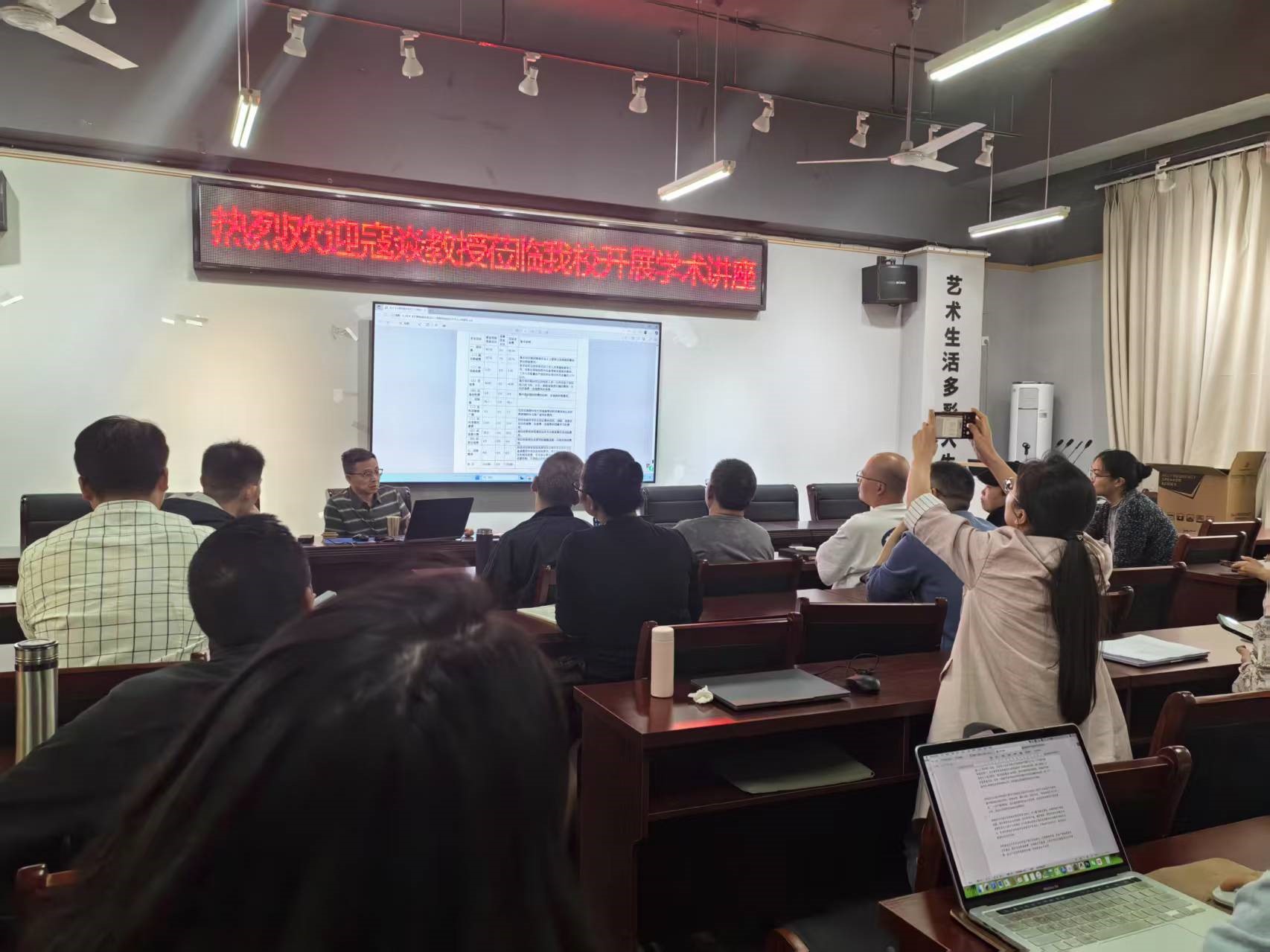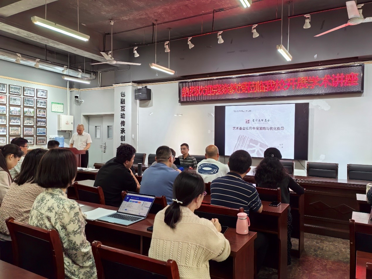 本网讯:为适应学校科研工作高速发展趋势,圆满完成学校科研工作任务,提升美术学院教师申报国家级科研基金项目的能力,2025年5月28日,美术学院特邀江西科技师范大学二级教授、江西省传统工艺研究院院长寇焱莅临美术学院开展“国家艺术基金项目申报策略与优化指导”专题讲座。