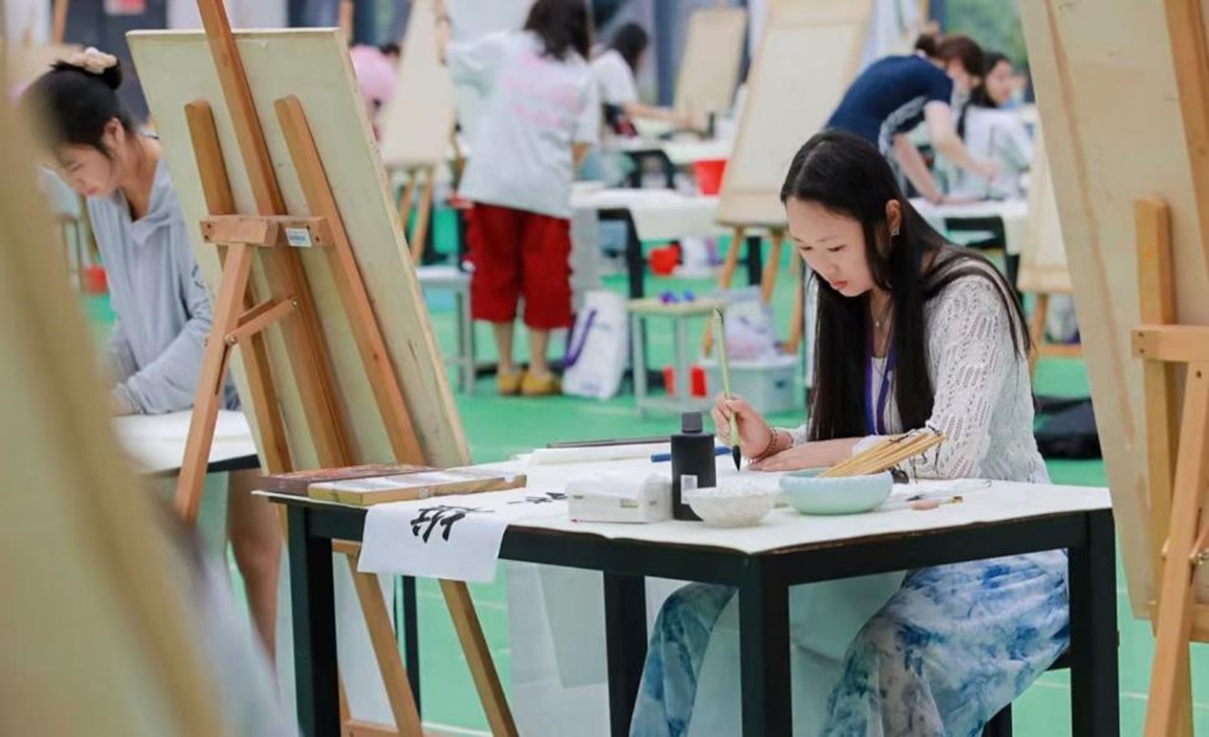大赛共进行三天,分为教师组和学生组,涵盖多个比赛项目。在教学(微课)展示环节,参赛师生通过精心设计的课程,展现了扎实的教学功底和创新的教学理念。专业技能展示必选项目(书法)中,师生们挥毫泼墨,一幅幅书法作品或飘逸灵动,或刚劲有力,尽显书法艺术魅力。专业技能展示自选项目,选手们各展所长,涵盖绘画、雕塑、手工等多种形式,充分展现了他们丰富的创造力和精湛技艺。专业技能展示必选项目(绘画)现场,参赛者们用画笔描绘心中的美好,色彩交织、线条灵动,创作出了一幅幅精彩画作。教师审美和人文素养项目,考验了教师们对经典美术作品的深刻理解与赏析能力。