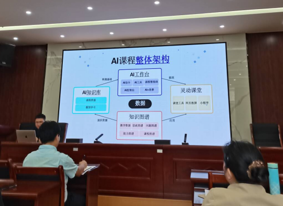 【本网讯】2025年6月4日,中华民族共同体概论教研室在学院会议室组织召开“AI赋能教育教学质量提升”专题研讨会,特邀智慧树教育集团高级教研顾问作专题报告,全体教研室教师参加学习研讨。