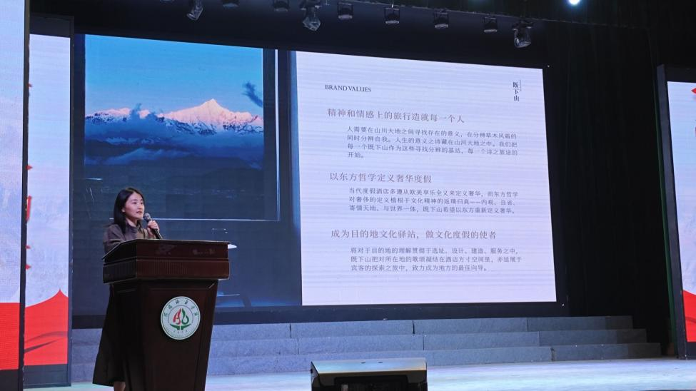 【本网讯】为拓宽学生就业渠道,助力学生职业发展,经济与管理学院于2025年6月8日15:00,邀请行李旅宿集团副总裁陆奂、人事工作人员王梦伊在南苑剧场开展了一场别开生面的校园招聘宣讲会,本次单位宣讲会出席人员有经济与管理学院学生工作办公室副主任马琳、经济与管理学院辅导员张小威、杜海兰、次仁次姆以及全体学生。