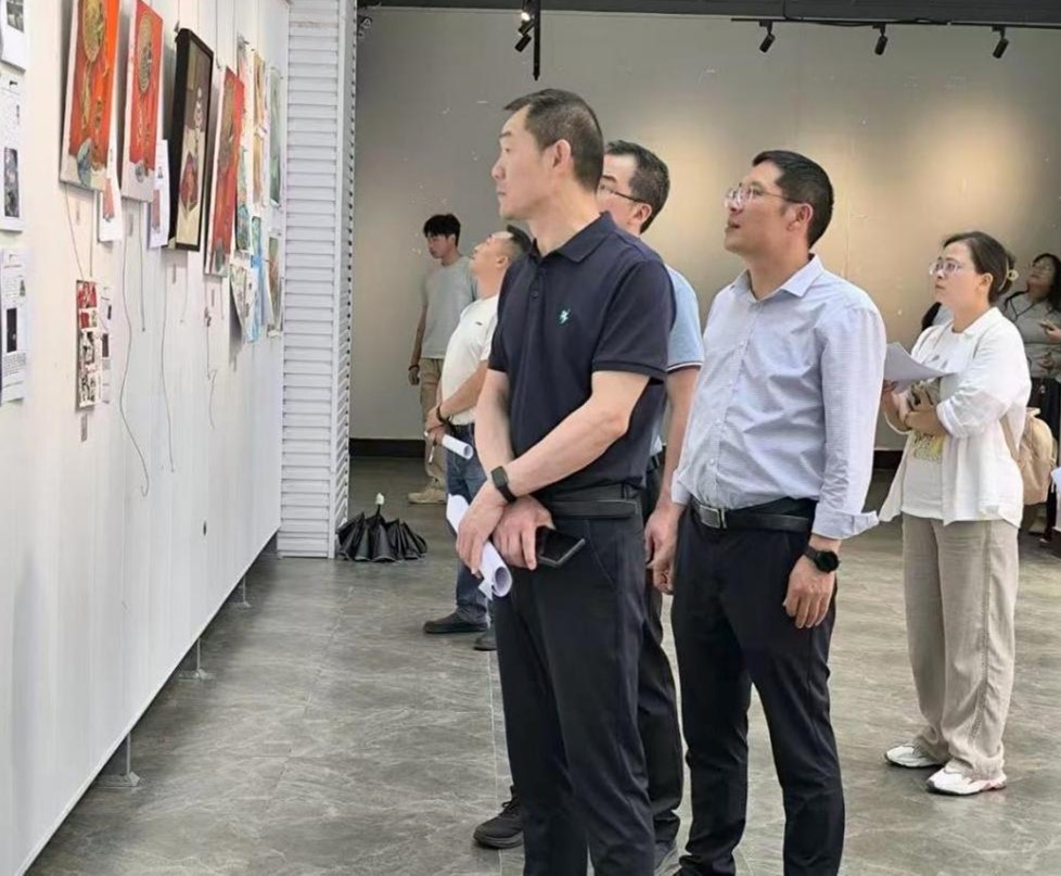 (图一:朱建军书记观看并点评参赛作品)