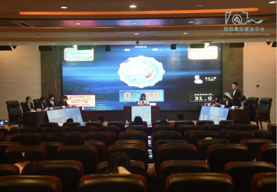 【本网讯】2025年6月4日14:30,由阿坝州红十字会与阿坝师范学院红十字会主办、共青团阿坝师范学院委员会与马克思主义学院承办的阿坝师范学院第八届大学生辩论赛决赛在学术报告厅隆重举行。校团委书记李家发、学工部副部长汪金蓉、宣传统战部宣传科科长容苑担任评委,文学与历史学院、计算机科学与技术学院、马克思主义学院、体育与健康学院四支队伍围绕“人工智能是否应该运用于人道主义救援”展开激烈辩论。