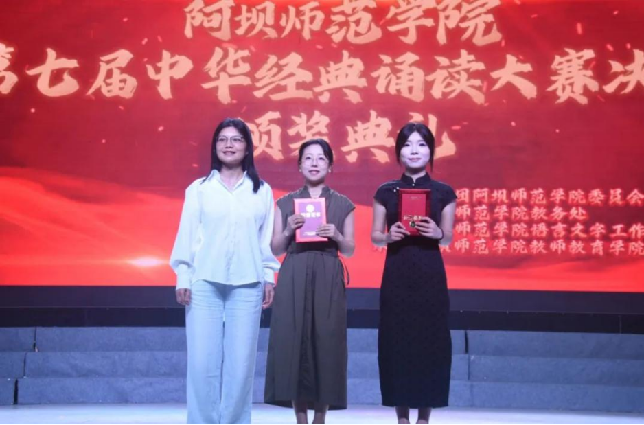 【本网讯】2025年6月3日19:00,由阿坝师范学院宣传统战部、中国共产主义青年团阿坝师范学院委员会、阿坝师范学院教务处、阿坝师范学院语言文字工作委员会主办,阿坝师范学院教师教育学院承办的第七届中华经典诵读大赛在南苑剧场顺利举行。学工部副部长更让孝、党委巡查工作办公室副主任卜凡、教师教育学院党委副书记范燕华、音乐舞蹈学院副院长袁文杰、教师教育学院教师彭学修莅临现场担任评委。