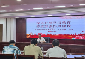【本网讯】2025年6月12日16:30,学校党委副书记、工会主席宋弘以“深入开展学习教育,持续加强作风建设”为题,在行政楼二楼会议室为分管及联系部门、学院党员同志讲授专题党课。机关第三党支部、数学学院、物电学院全体党员教师到场学习,物理与电子电气工程学院党委书记卢永雪主持。